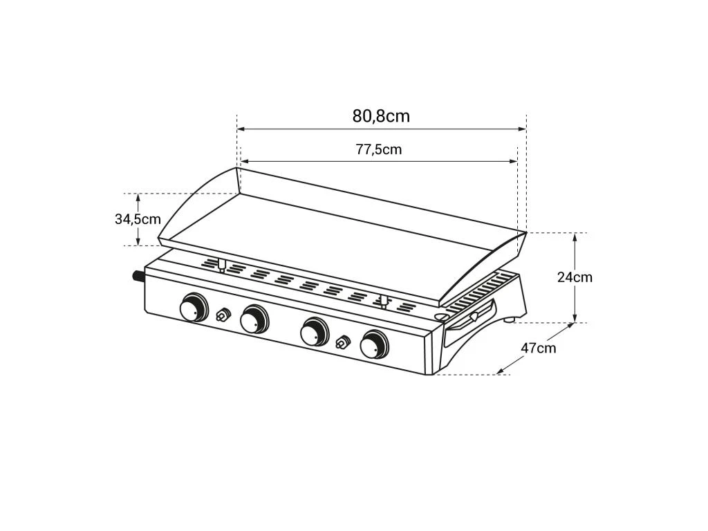 – Plancha : L 80,8 × P 47 × H 24cm