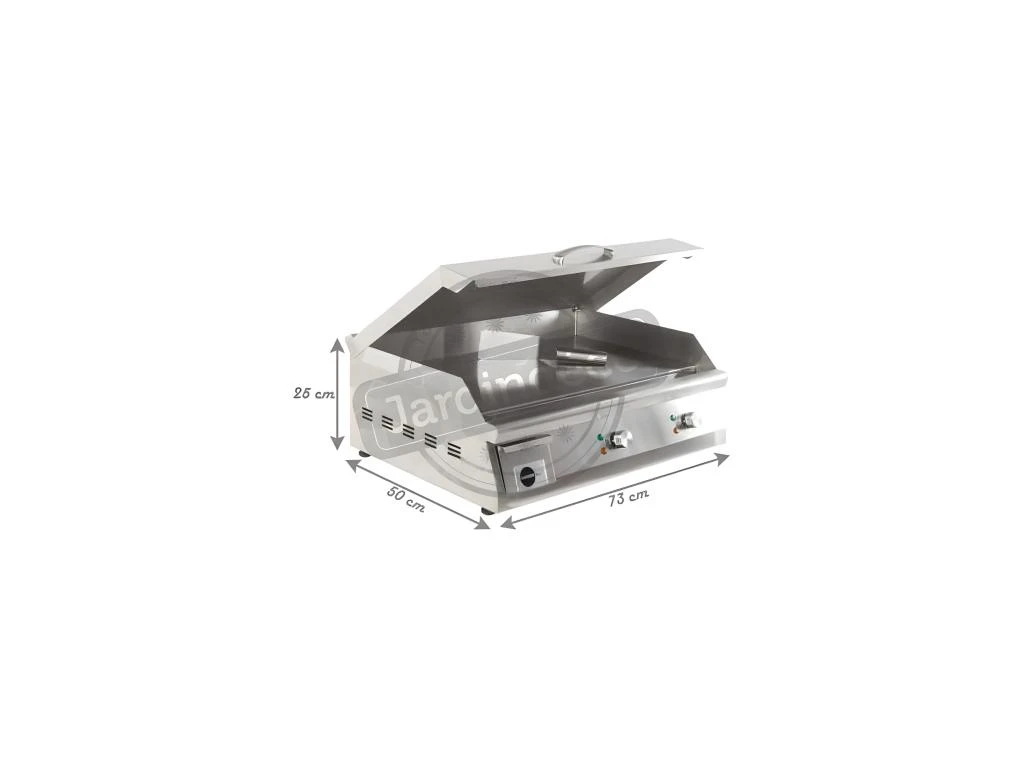 Information complémentaire : Pieds réglables. Norme IPX4 (protection totale contre les projections d’eau). Thermostat réglable de 50 à 300°C. Qualité professionnelle. Avec bac de récupération des jus (ouverture latérale)