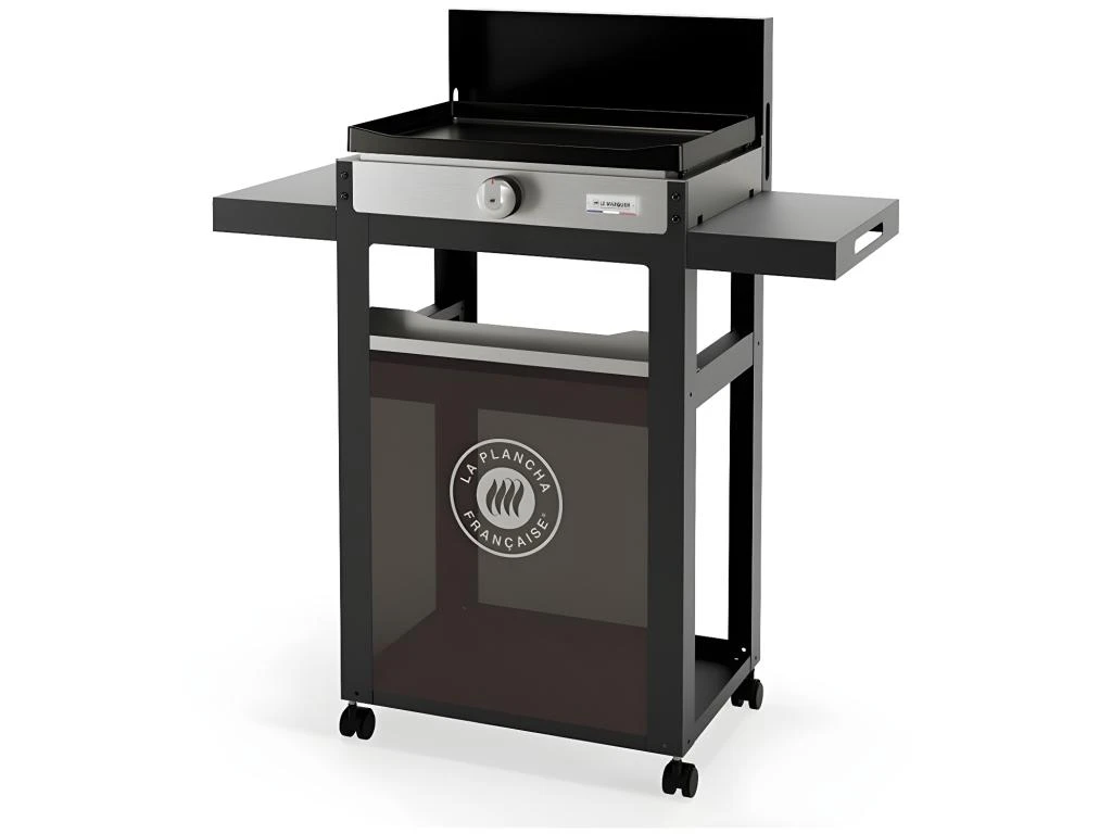 Plancha Française électrique 150 Duo – Le Marquier • Convient pour 4 à 8 couverts • Plaque de cuisson en fonte émaillée inclinable (avec trou) 50 x 35 cm • 1 zone de cuisson avec radiant régulé par thermostat de température réglable de 50 à 300°C • 1 radiants d’une puissance de 2 kW • Fonctionne au courant électrique 220V • Bouton de commande ergonomique et antidérapant • Témoin lumineux de mise en chauffe • Récupérateur inox rectangulaire inclus • Chassis et porte épices en inox satiné • Chariot et couvercle en acier peinture époxy noire • Espace de travail modulable : 2 tablettes amovibles 37,5 x 20 cm (régables sur 3 positions), 1 porte-épices, 1 rideau, 1 couvercle de protection qui se transforme en crédence. • Déplacement facile : 4 roulettes directionnelles autobloquantes • Design : Plancha tou-en-un compacte et personnalisable • Confort : modularité et faible encombrement • Ultra performante : technologie avec radiant à haut rendement alliant rapidité et puissance de montée en température Dimensions : • Dimensions ouverte (L x l x H) : 92 x 47 x 105,5 cm • Dimensions fermé (L x l x H) : 53 x 42 x 91,5 cm • Poids : 22 kg Norme et certification : • Norme CE • Norme IPX4 (résistance aux projections d’eau) • Certification Origine France Garantie Garantie : • Plaque : à vie • Radiants : 2 ans • Châssis : 2 ans Caractéristiques techniques Alimentation:Électrique Collection:La Plancha Française Convient pour:6 à 8 personnes Couleur:Noir Dimensions (L x l x H):92 x 47 x 105,5 cm Dimensions colis (L x l x H):NC Garantie:2 ans Installation:Sur chariot Marque:LE MARQUIER Matière(s):Fonte émaillée Modèle:Française électrique 150 Duo Nombre de brûleurs:1 Origine:Fabriqué en France Plaque:Fonte émaillée Poids:22 kg Puissance (kW):2 kW Récupérateur de graisses:Oui Surface de cuisson:50 x 35 cm