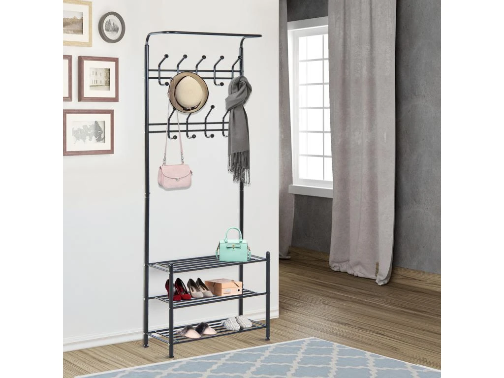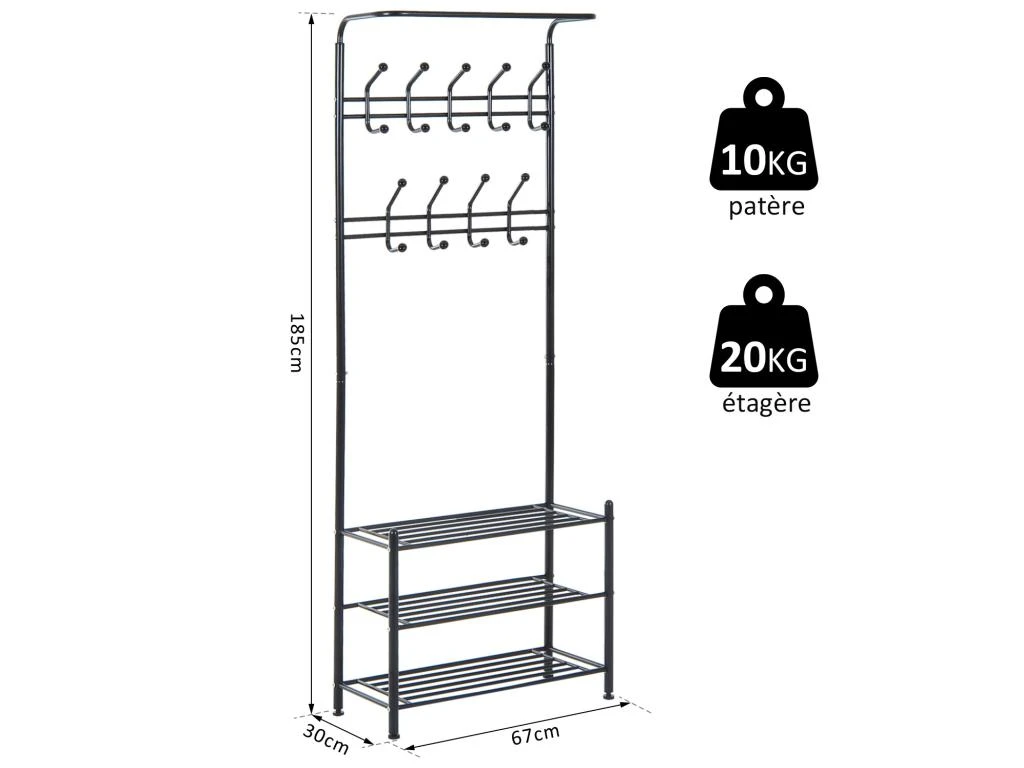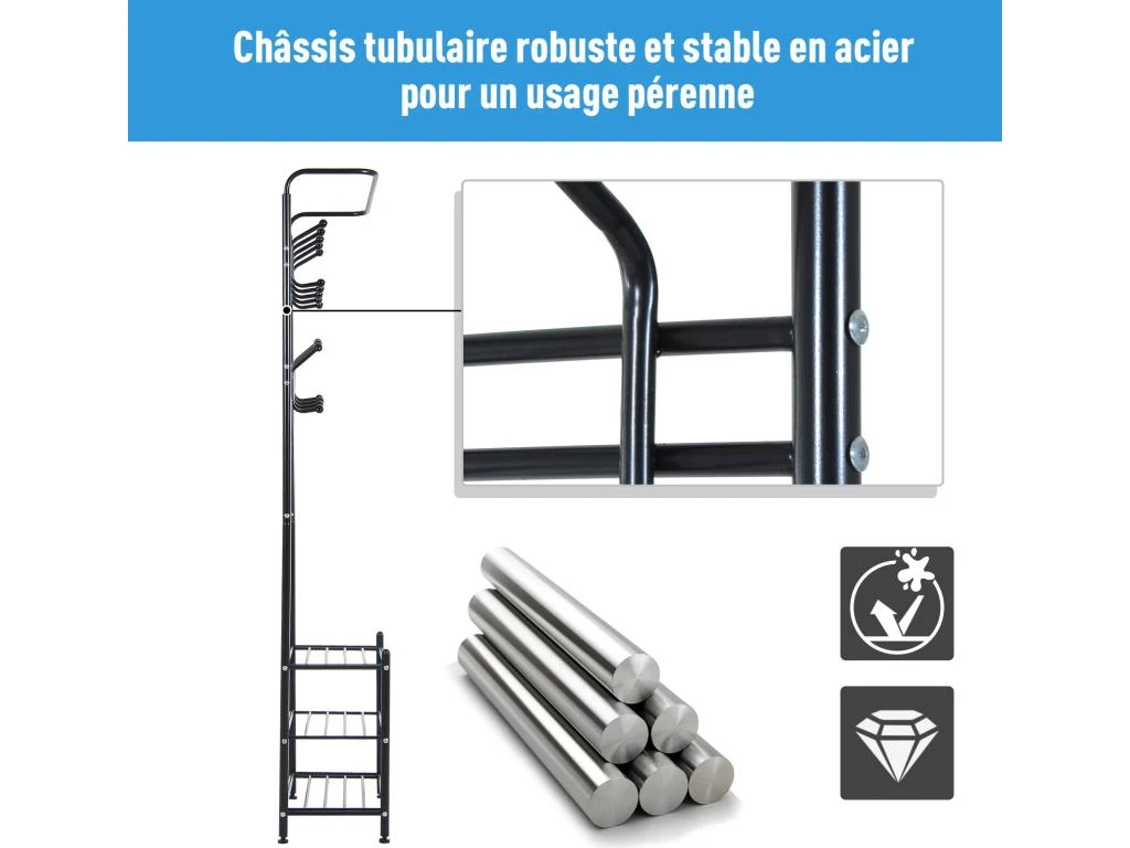 – Multi-rangements : barre de penderie, porte-manteaux 18 patères, 3 étagères pour ranger vos chaussures, boites de rangements, accessoires, etc…
