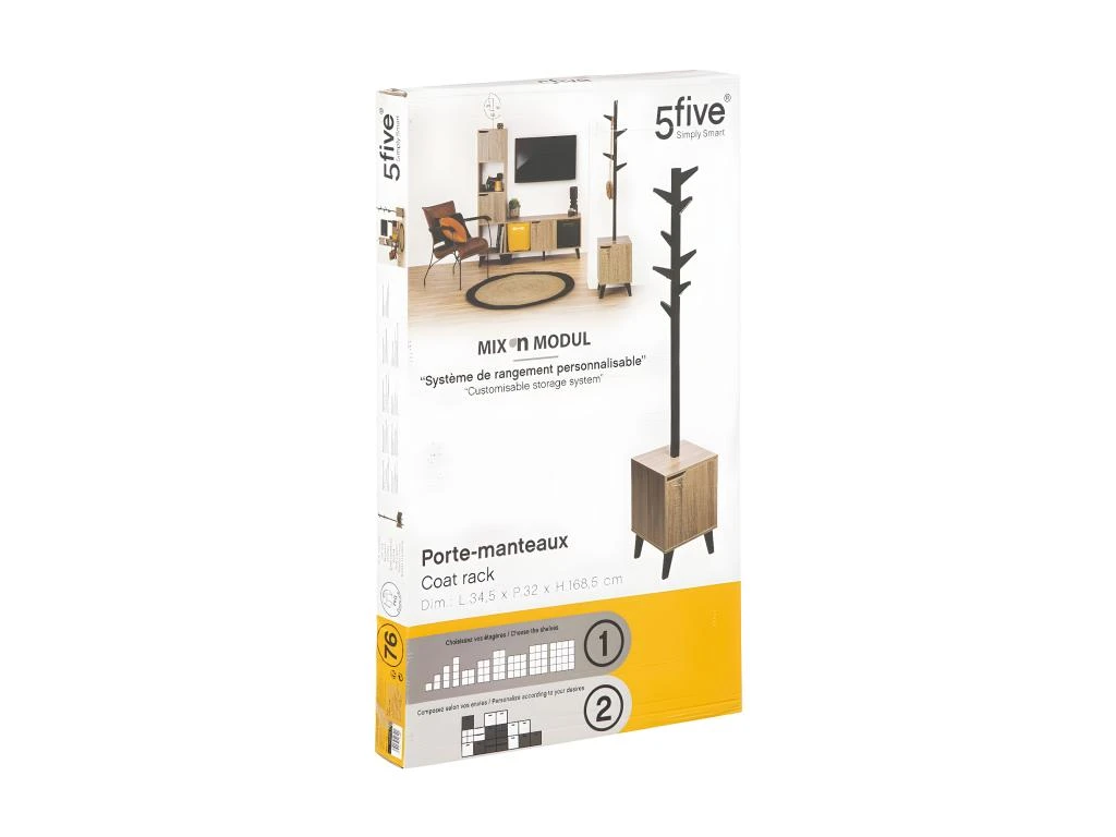 Porte-manteaux avec 8 têtes sur meuble 1 case avec porte et pieds –