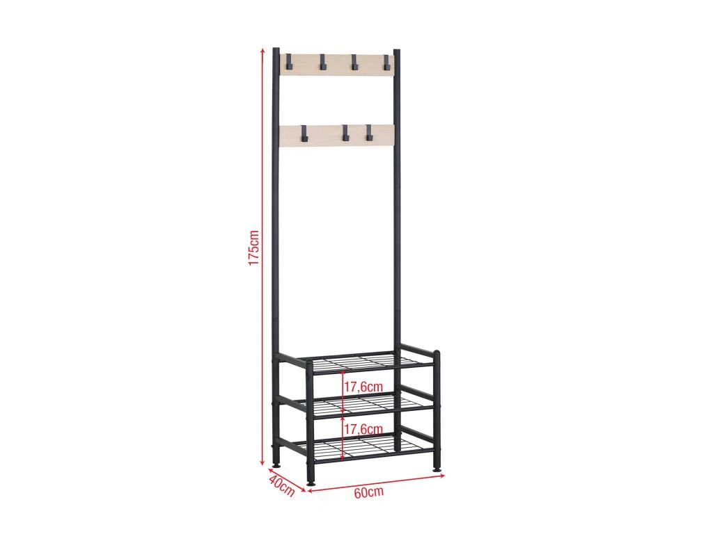 – PORTE MANTEAUX AVEC RACKS : Un porte manteau complet avec tout ce dont vous avez besoin pour organiser vos vêtements et accessoires quotidiens. Un porte-manteau autoportant unique qui vous permet de ranger manteaux, sacs et chaussures en un seul endroit. Parfait comme porte-chaussures dans l’entrée, vous aurez tout ce dont vous avez besoin pour sortir à portée de main.