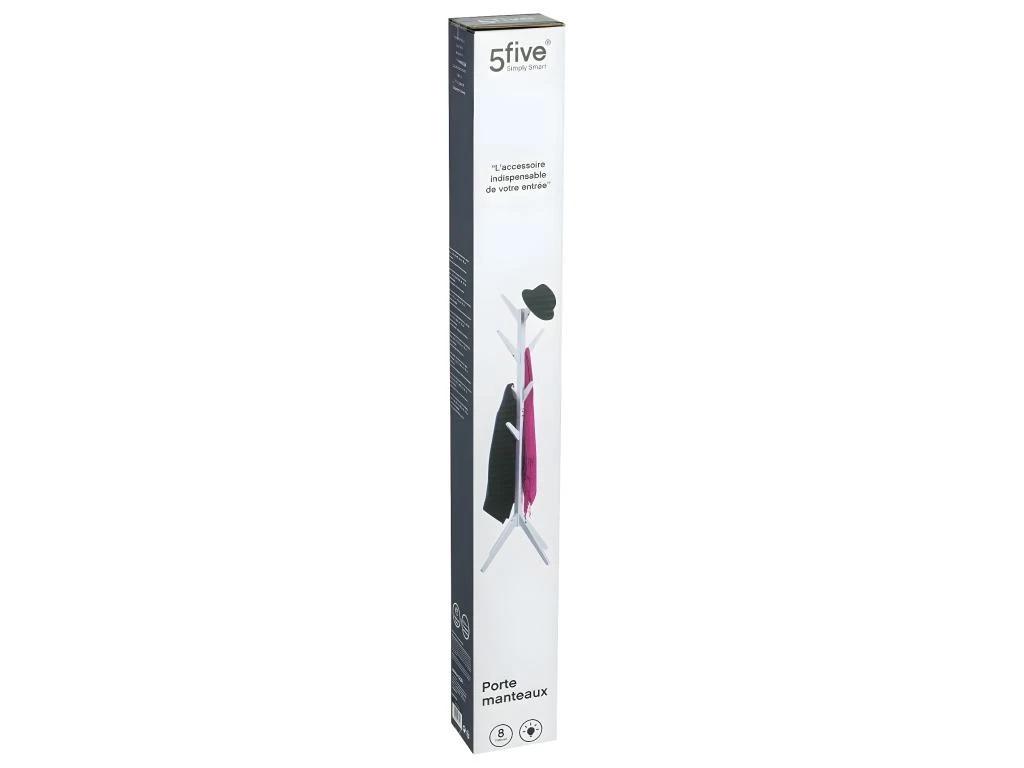 Porte-manteaux en Bois Blanc 8 Patères H 173 cm – Dimensions : L. 62 x P. 62 x H. 173 cm –