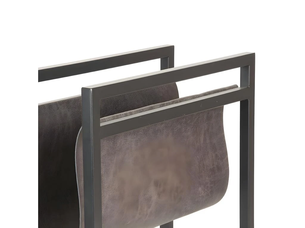 Ce porte-revues en métal noir présente un cadre rectangulaire. Le cuir double de couleur anthracite de haute qualité pour placer des magazines et des journaux repose entre le cadre. Le cuir double ajoute une résistance supplémentaire. Il garantit également que l’intérieur et l’extérieur ont une belle structure en cuir avec ses nuances de couleurs froides et ses contrastes subtils. La combinaison des matériaux confère à ce porte-revues un look robuste, industriel et rétro, qui convient à tout intérieur. Vous pouvez placer ce support de rangement à côté d’une armoire, d’un fauteuil ou d’autres objets, ce qui en fait un ajustement parfait.