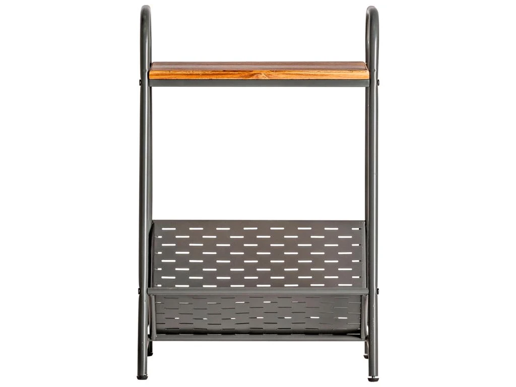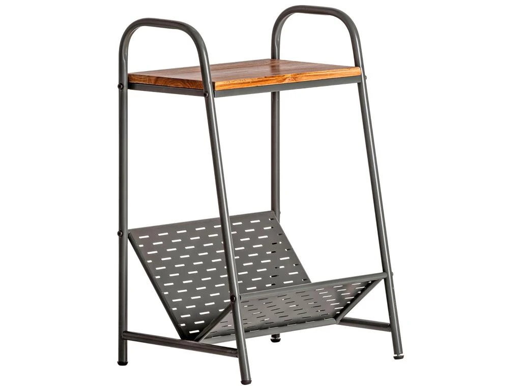 Porte-revues de style industriel, fabriqué en bois de sapin et en fer. Il est pourvu d’un support inférieur en fer noir et d’une étagère supérieure en bois marron. Sa taille est de 40×61,5×32 cm.
