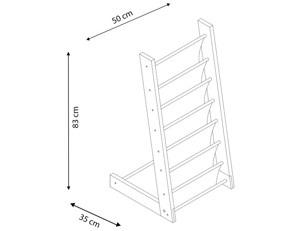 · Ce porte-revues a six sections et possède un support arrière qui lui donne de la stabilité pour l’installer au sol.