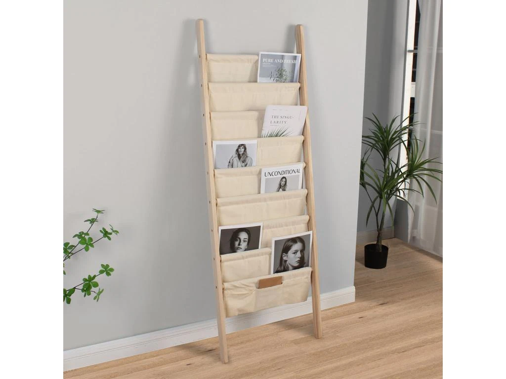 PORTE-REVUES EN TISSU ET BOIS AVEC 8 SECTIONS XOEL