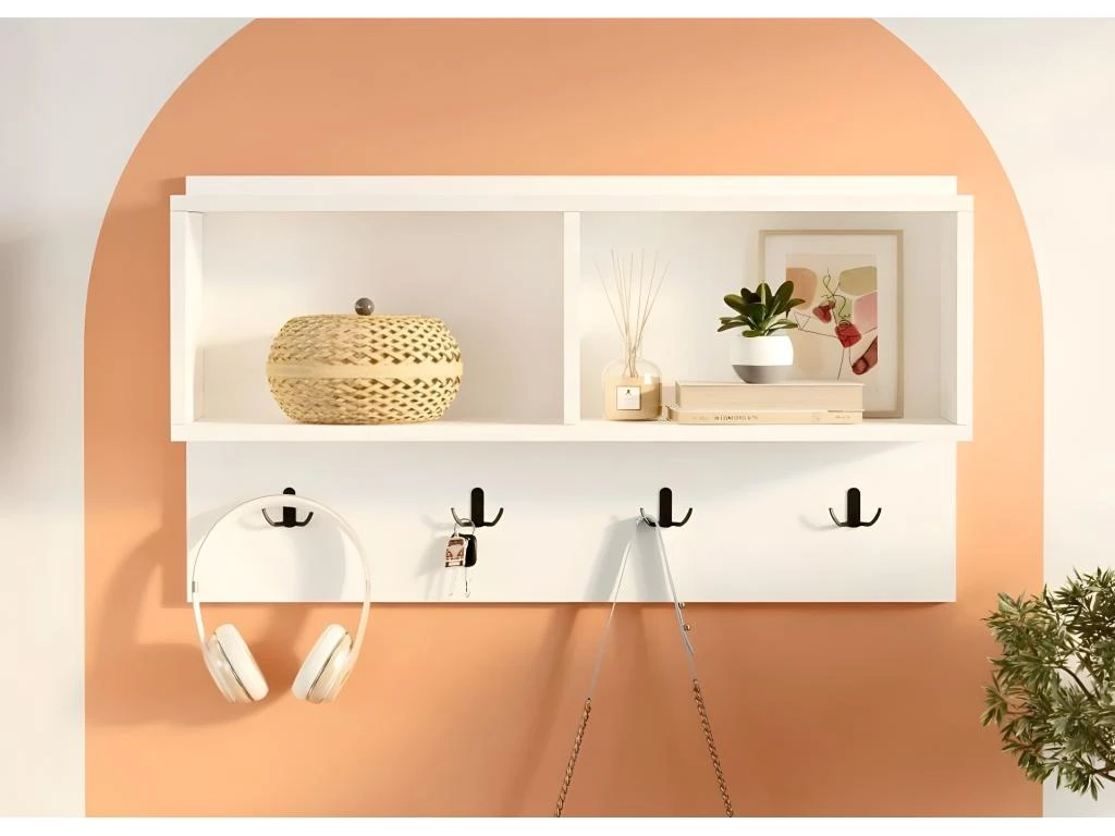 Venprodin| Fabricants de meubles en Espagne depuis plus de 10 ans – Porte-manteau Brian avec étagère 92 cm Blanc Panneau de particules/panneaux de particules de 18 mm répondant aux normes de qualité européennes E1 de première classe. Les dossiers sont en MDF de 3 mm. Un ruban PVC de première qualité est utilisé dans toutes les parties du produit. Les pieds sont en PVC (Plastique) de 1ère classe. Dimensions : Largeur : 92 cm – Profondeur : 18 cm – Hauteur : 51 cm Le produit est expédié démonté. Toutes les pièces sont numérotées avec une méthode de numérotation très particulière pour faciliter l’assemblage. Un schéma d’installation détaillé, tous les outils et éléments de connexion nécessaires au montage et à l’installation sont inclus dans la boîte. Il a la capacité d’être démonté et remonté plusieurs fois. Les dimensions des produits de la marque Yurudesign se complètent, garantissant que tous les autres produits que vous achetez seront entièrement compatibles. Avec ses dimensions ergonomiques et son design fonctionnel, la série Brian de Yurudesign s’adapte non seulement à n’importe quel environnement mais plaît également à l’œil. Ce qui distingue la série Brian de ses homologues, c’est son système de connexion qui permet des démontages et assemblages répétés, ses couleurs tendance qui s’adaptent à n’importe quel environnement et la capacité des produits de la série à être combinés entre eux. Livraison au niveau de la rue. N’inclut pas l’assemblage.