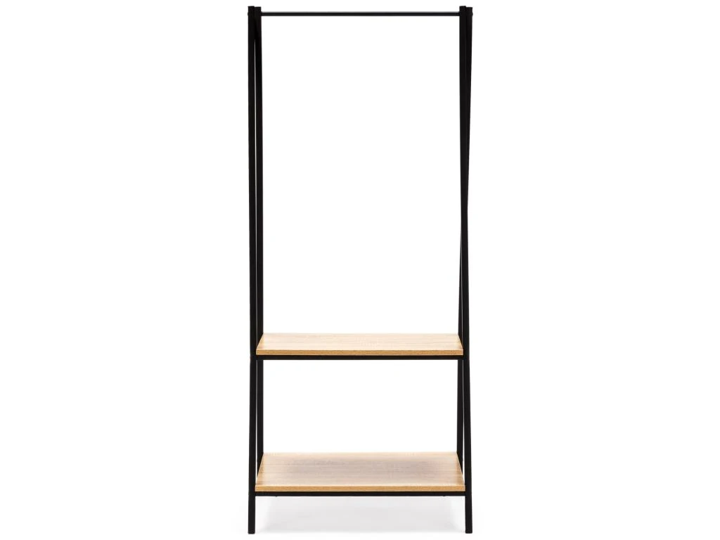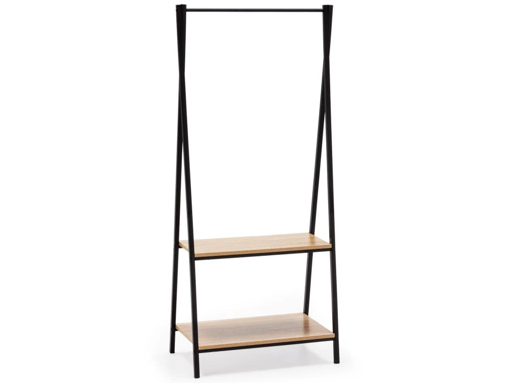 · Portemanteau en panneaux de particules standard E1 avec placage mélaminé. La structure en tubes d’acier de couleur noir mat rend cette armoire résistante et stable, avec une capacité plus que suffisante pour suspendre nos vêtements, ainsi que des chaussures de soutien ou d’autres accessoires.