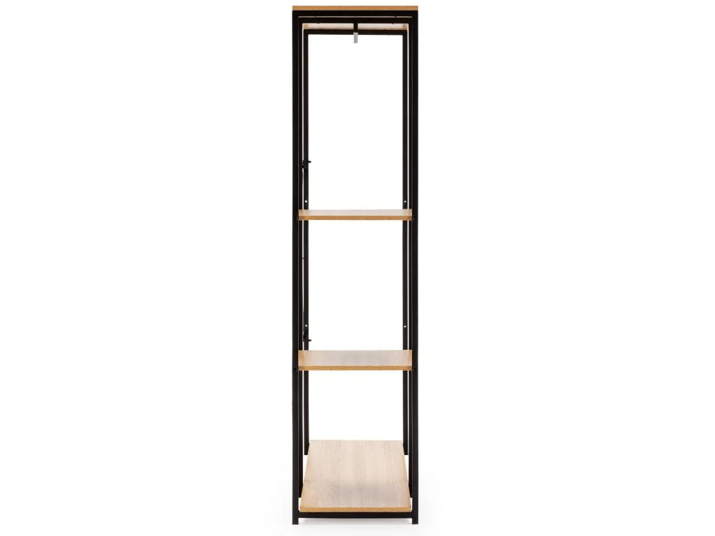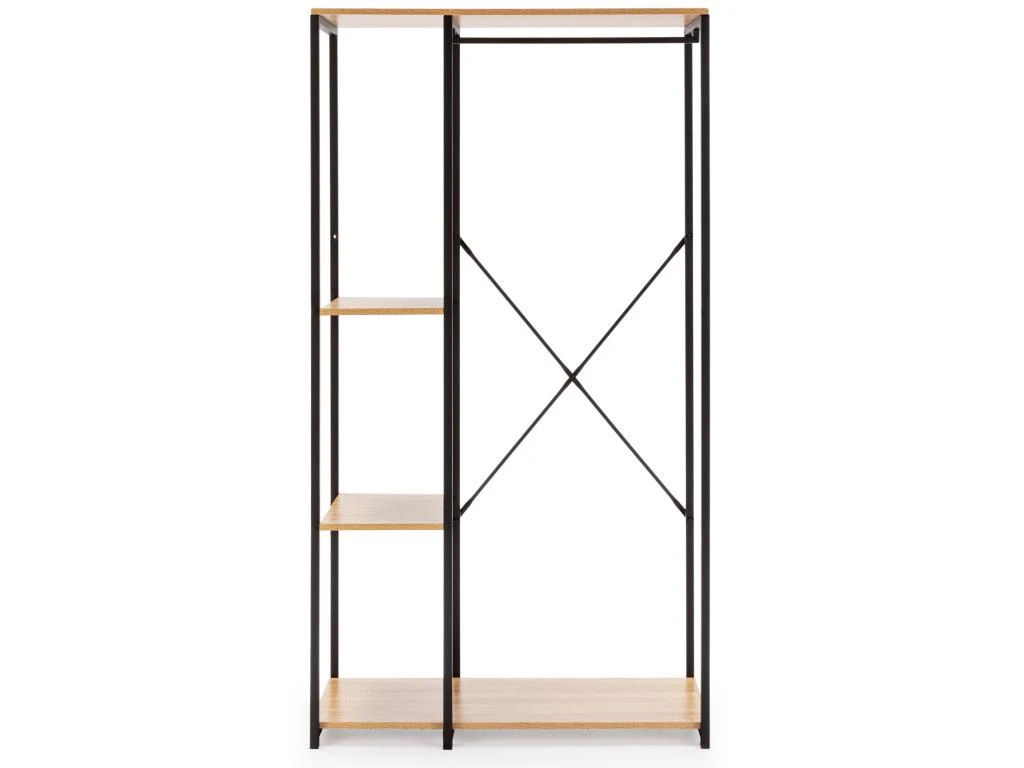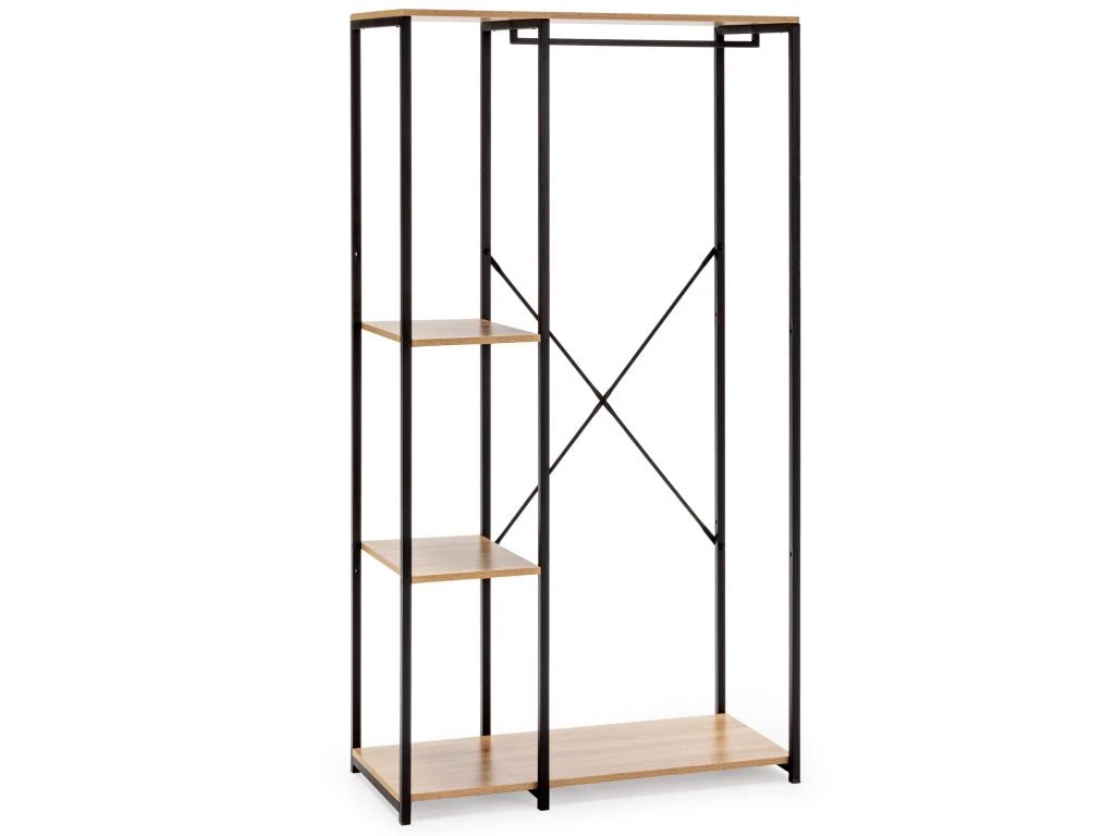 · Meuble en panneaux de particules standard E1 avec placage mélaminé. La structure en tubes d’acier de couleur noir mat rend cette armoire résistante et stable, avec une capacité plus que suffisante pour suspendre nos vêtements, ainsi que des chaussures de soutien ou d’autres accessoires.