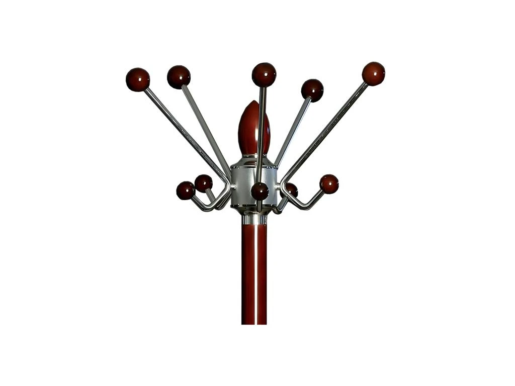 Le socle de la base réalisée en marbre assure une stabilité parfaite et soutient le corps en bois teinte noyer agrémenté d’éléments en métal chromé. Un porte-parapluie est prévu.