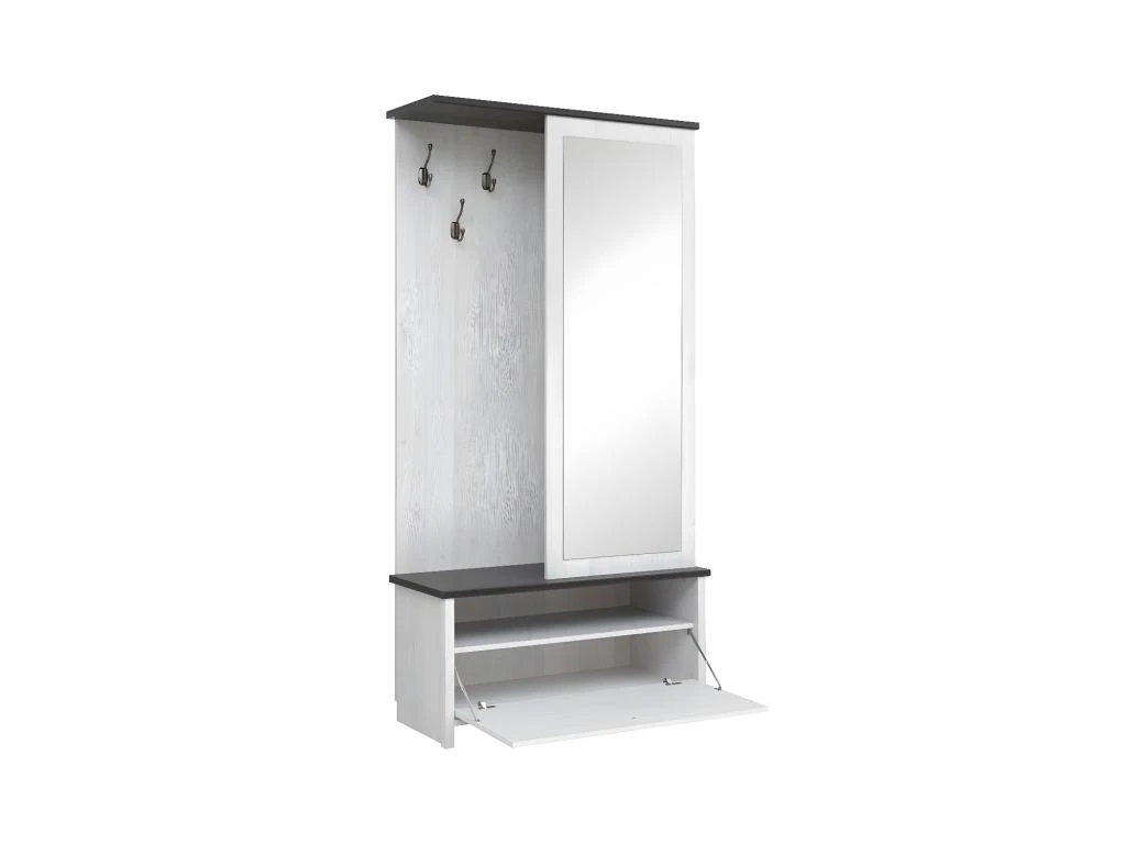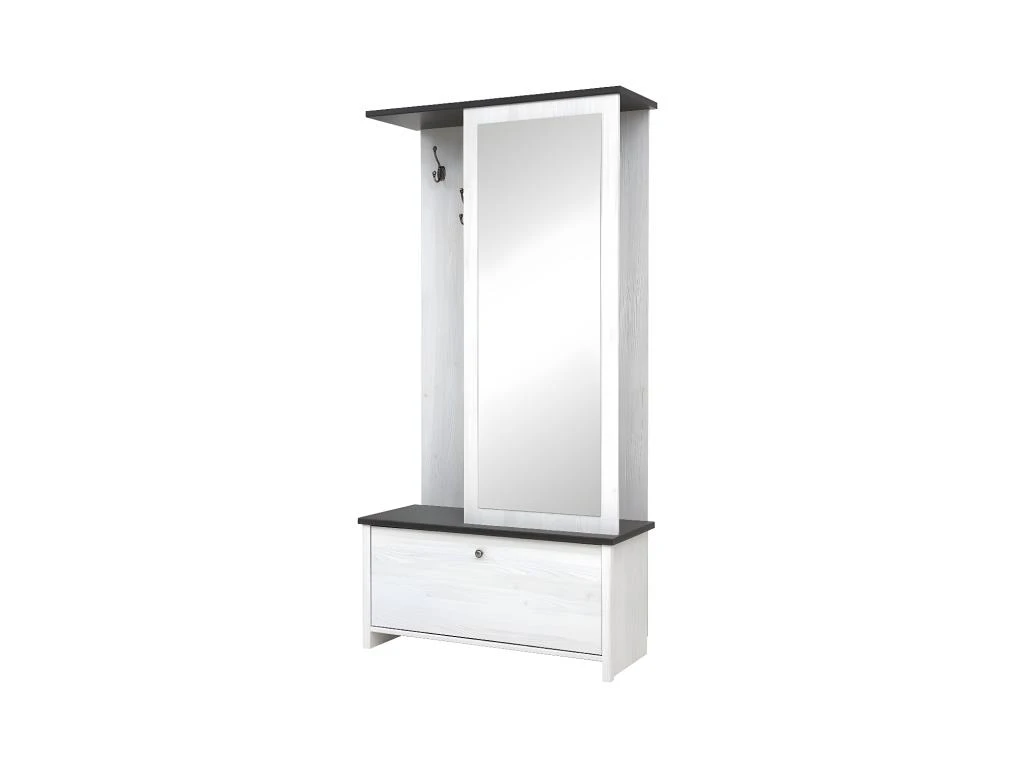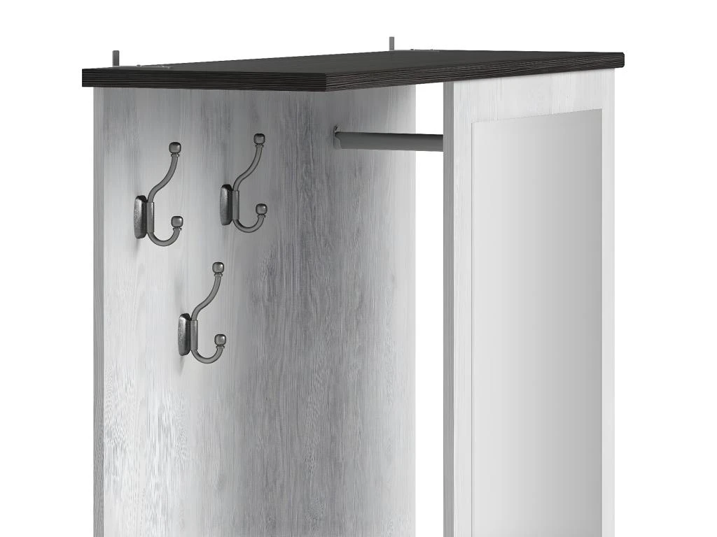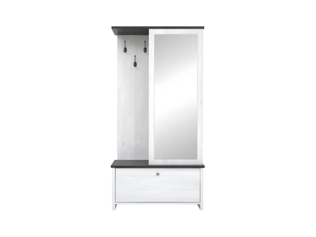 Ce meuble dispose d’une partie penderie avec une tringle à vêtements, de trois patères et d’un meuble à chaussures pratique avec une porte abattante. Le grand miroir permet de se regarder en entier et, de plus, il reflète parfaitement la lumière donnant ainsi de la clarté à la pièce., POINTS FORTS: Style scandinave, Meuble à chaussures, Tringle à vêtements, Miroir, Patères, CARACTÉRISTIQUES TECHNIQUES: Profondeur 39,5 cm, Largeur 95,5 cm, Hauteur 189,5 cm, Produit en Europe, À monter soi-même, Photos des articles le plus fidèle possible, mais restant non contractuelles, les nuances de couleur et le rendu des matières présentés à l’écran pouvant être différents de la réalité