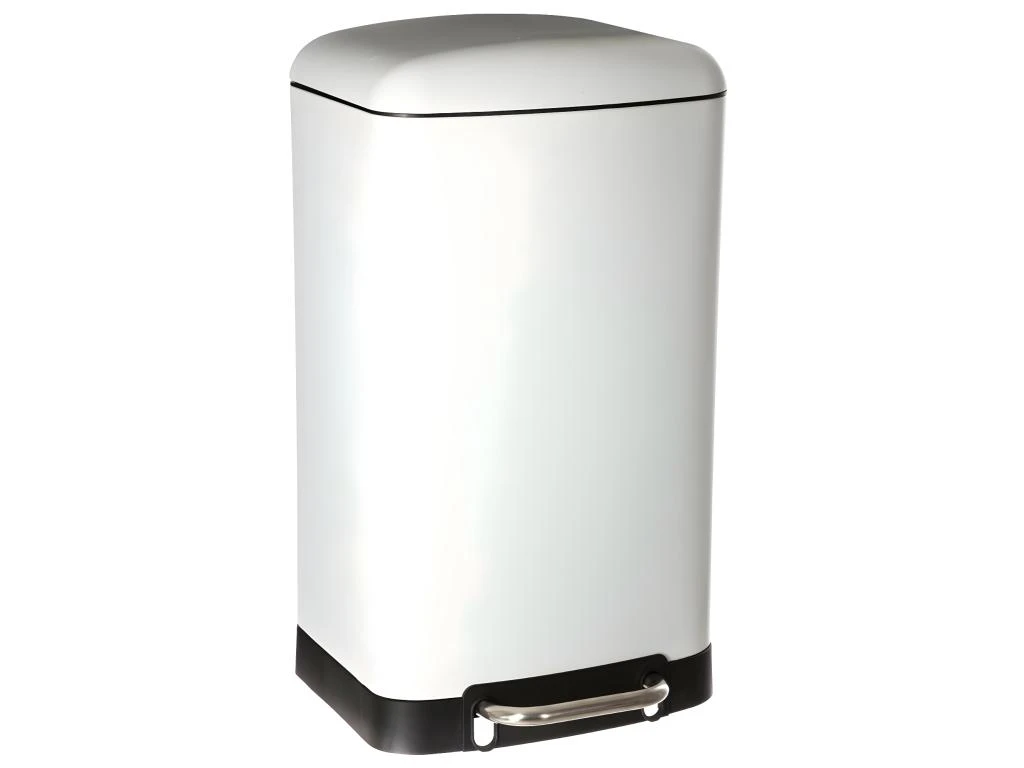 - Poubelle à pédale à fermeture silencieuse blanche. Seau amovible / poignée au dos. Sac poubelle conseillé : poubelle 30L : sac 50L. Nettoyage facile.
