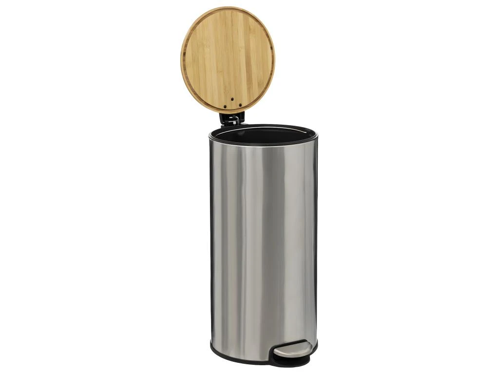 Poubelle ronde en métal avec couvercle en Bambou –