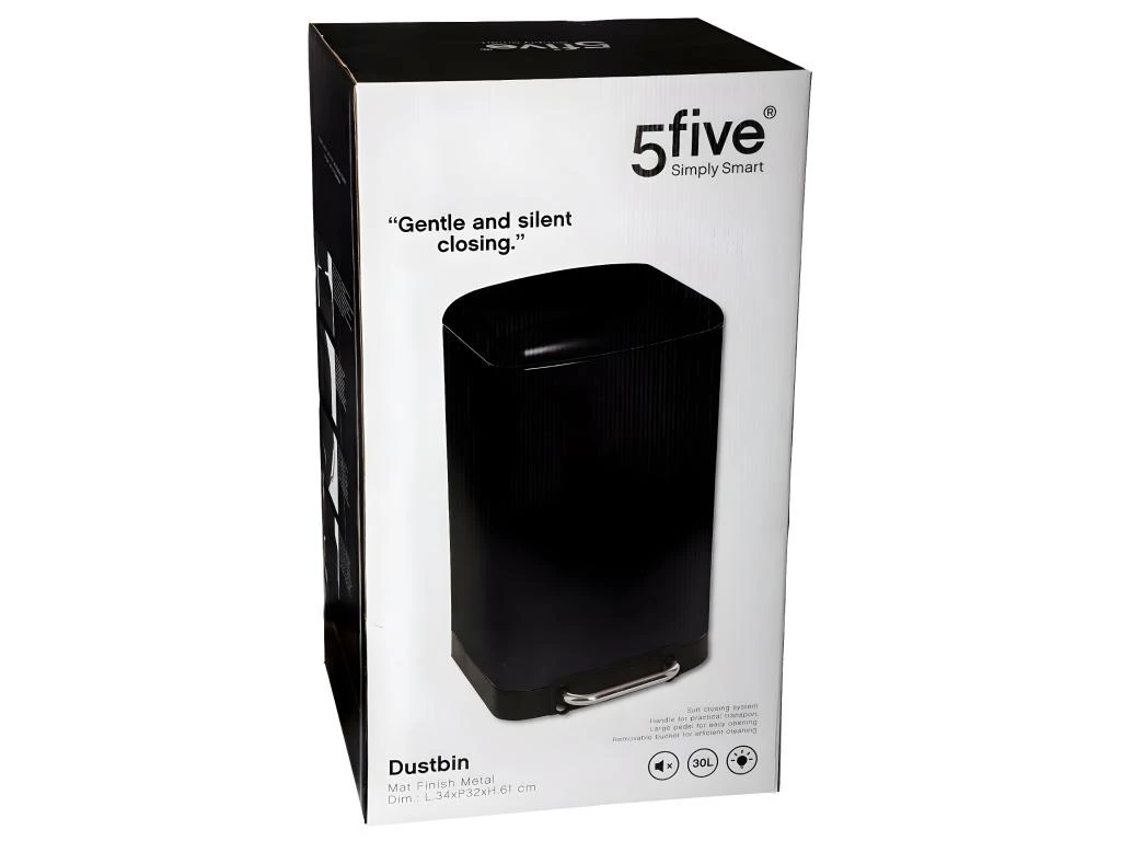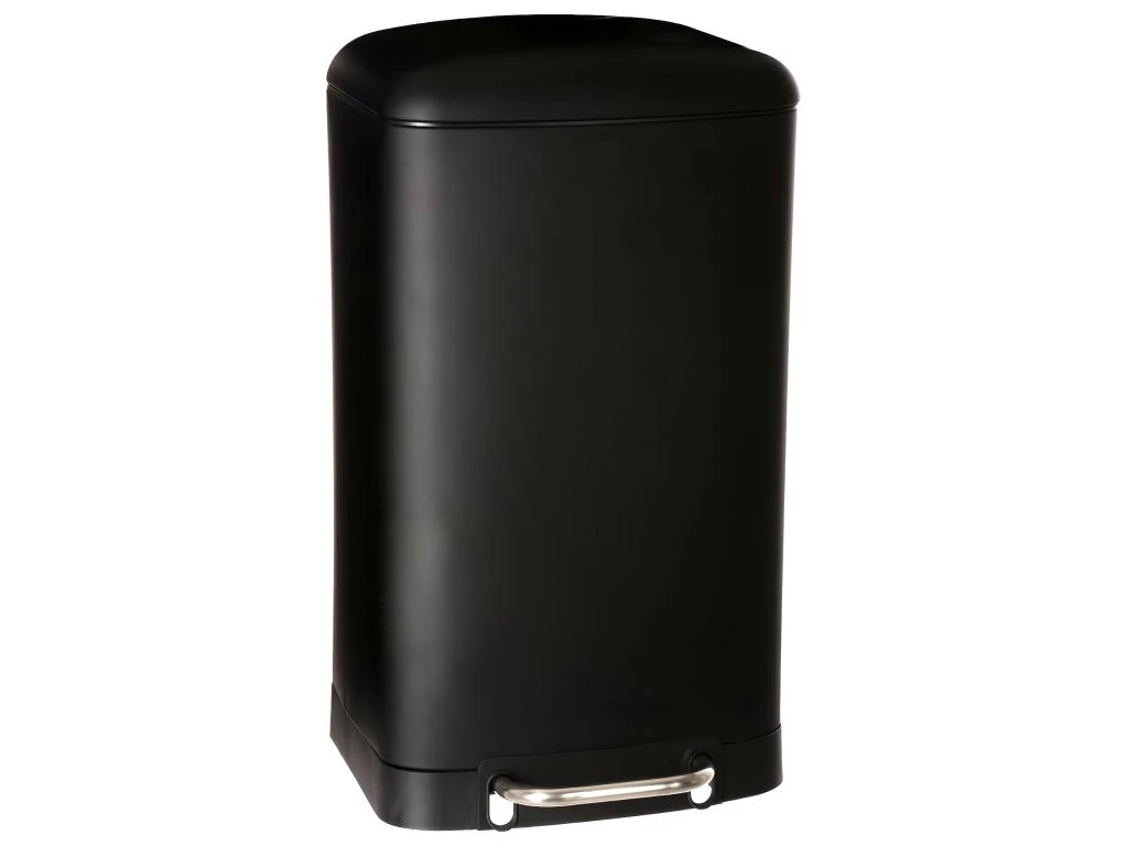 Poubelle à pédale à fermeture silencieuse noire. Seau amovible / poignée au dos. Sac poubelle conseillé : poubelle 30L : sac 50L. Nettoyage facile.