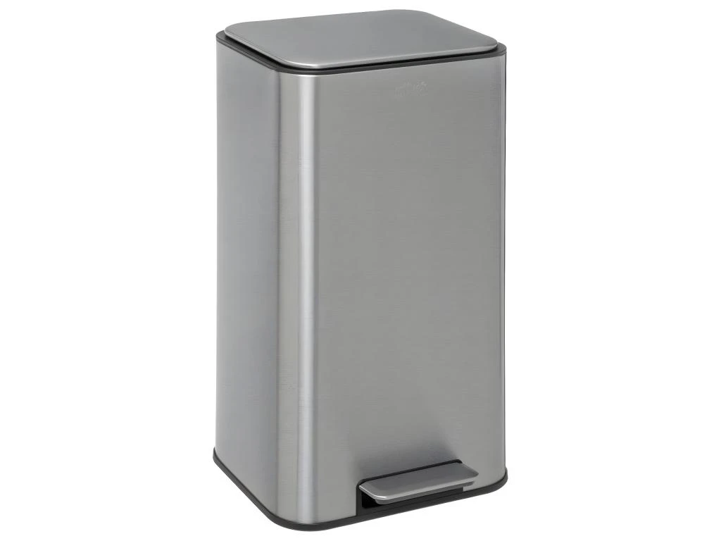 Poubelle 30 litres Safir en Métal Inox ouverture à pédale – Dimensions Produit : 32,5 x 32 x 60,5 cm – Matière : Métal – Couleur: Inox satin avec contours noir – Poids Produit : 5,5 kg – Poubelle 30L à pédale aux courbes modernes, avec couvercle design ultra plat, poignée et mécanisme intégré qui protège votre mur, seau avec retenue du sac et forme effet anti ventouse, ouverture pratique avec système de retenue du couvercle à 90°, fermeture silencieuse, filtre à charbon anti odeurs intégré + 1 recharge.