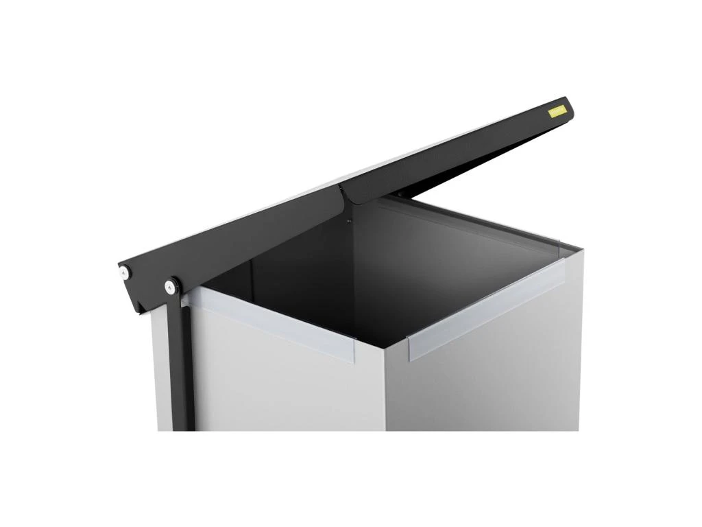 Cette poubelle de 70 l est faite d’acier peint par poudrage, un matériau qui séduit tant par ses surfaces lisses et faciles d’entretien que par sa solidité et sa durabilité remarquables.
