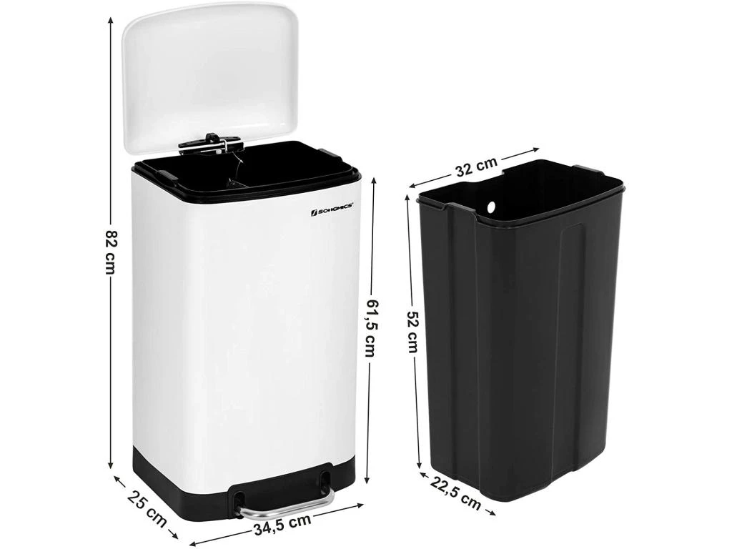 Dimensions du seau intérieur : 32,5 x 22,5 x 52,5 cm (L x l x H)