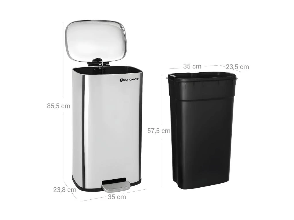 Avec la pédale ronde, la poubelle s’ouvre sans l’aide des mains et se ferme lentement en silence; le couvercle évite les odeurs désagréables