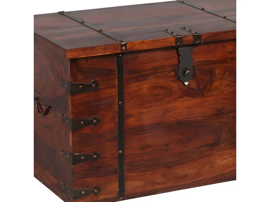 En bois massif et disposant d’un grand espace de rangement, ce coffre sera parfait pour rangers divers accessoires, et pourra être utilisé dans un grand nombre de pièces différentes. Structure en palissandre massif, teinte acajou clair et vernis nitro-cellulosique.