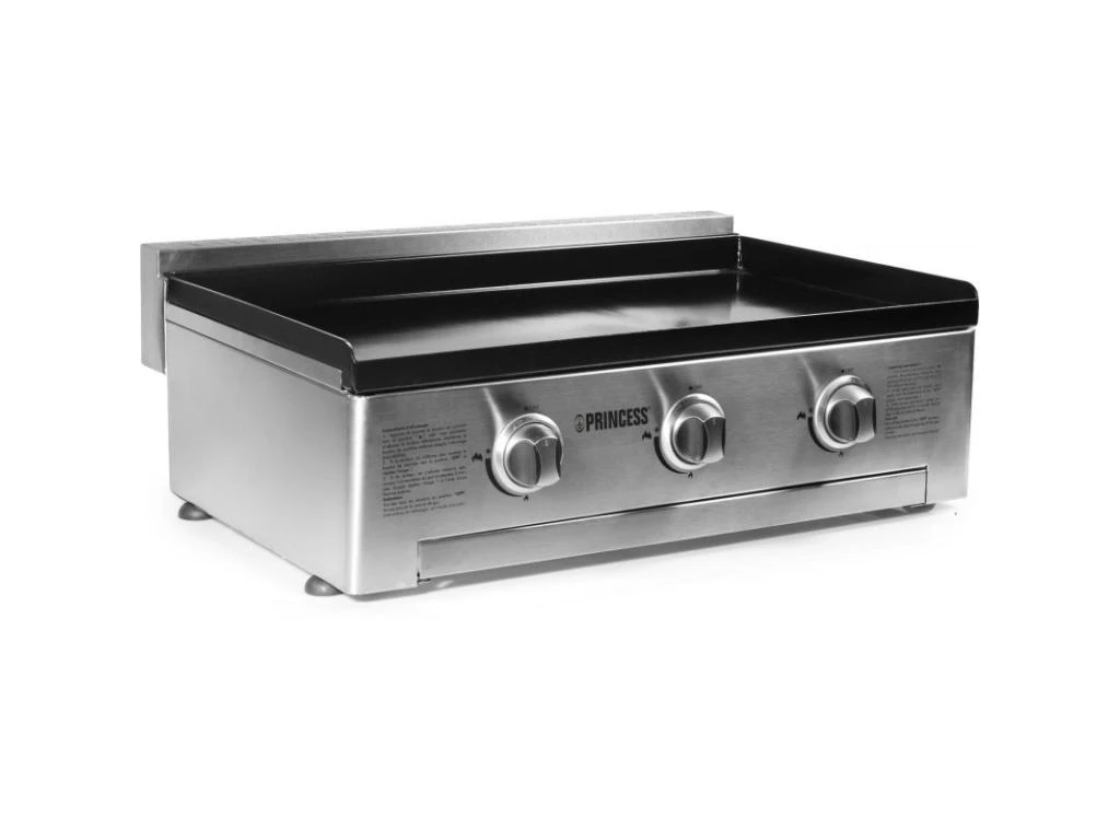 Princess Plancha gaz 7200w plaque fonte émaillé 72×41.6cm – 01.105053.02.001 Plancha gaz Princess 01.105053.02.001 avec plaque de cuisson en fonte émaillée. Nouvelle plaque de cuisson de luxe avec 3 brûleurs à gaz, une grande surface de cuisson en fonte émaillée et un ‘allumage ‘piezo’. Avec un écoulement utile d’excédent de graisse dans la plaque de cuisson. Très facile à utiliser et à nettoyer. – Coloris : Inox.