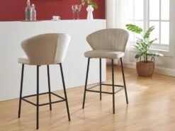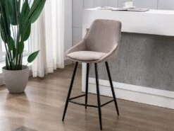 Lot De 2 Tabourets De Bar – Velours – Taupe – MASURIE