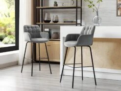 Lot De 2 Tabourets De Bar En Velours Et Métal – Gris – PEGA De Pascal MORABITO