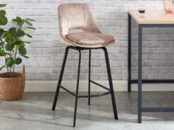 Lot De 2 Tabourets De Bar – Velours Et Métal – Taupe – INDILANE