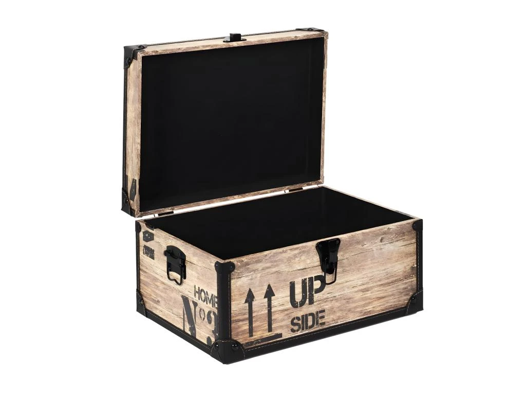 D’inspiration industrielle, les inscriptions style marchand donneront du style à votre intérieur. Pratique, ces malles vous offrent une capacité de rangement supplémentaire, tout en donnant du cachet à votre déco.
