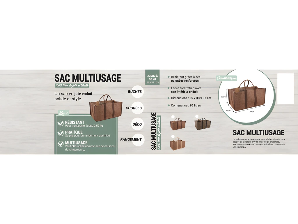 Fabriqué en toile de jute avec doublure plastifiée