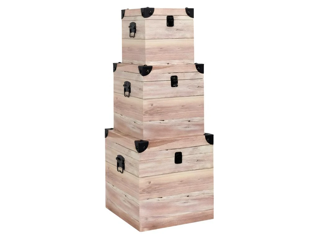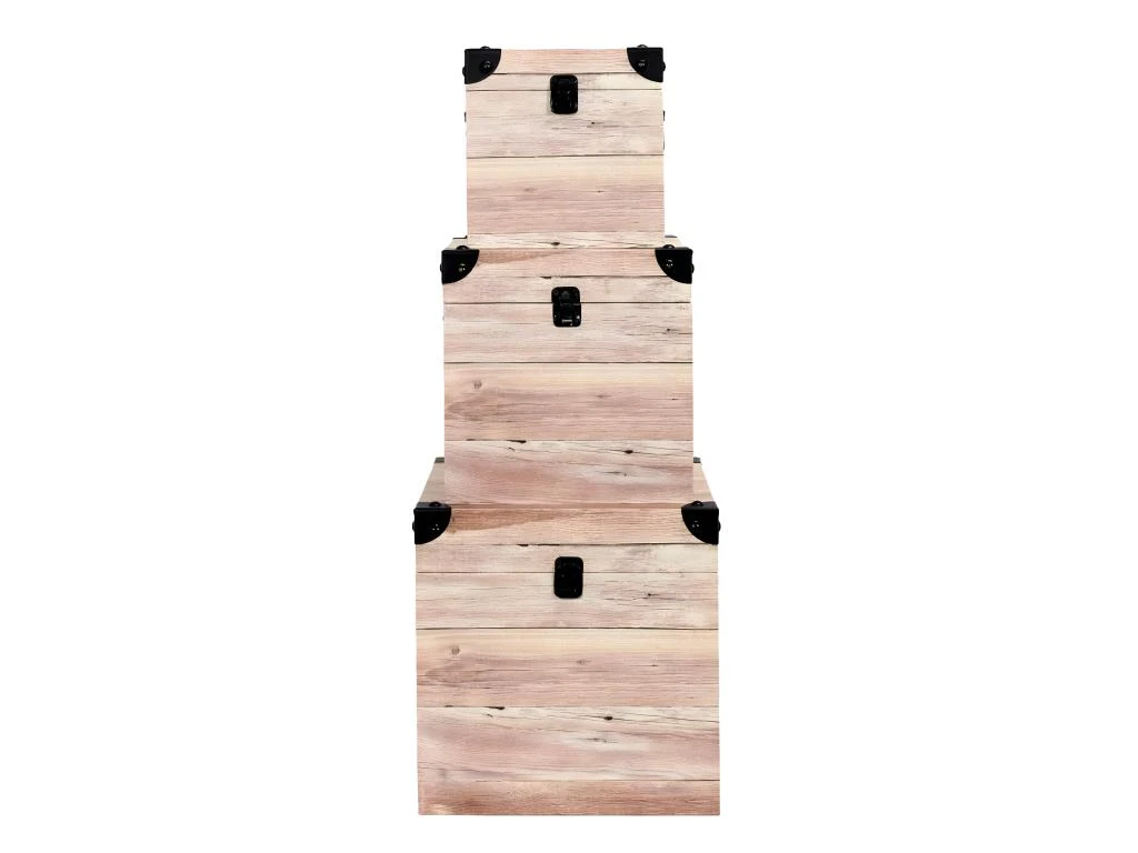 Lot de 3 Malles Cubes Aspect Bois Rosé de la gamme Sama.