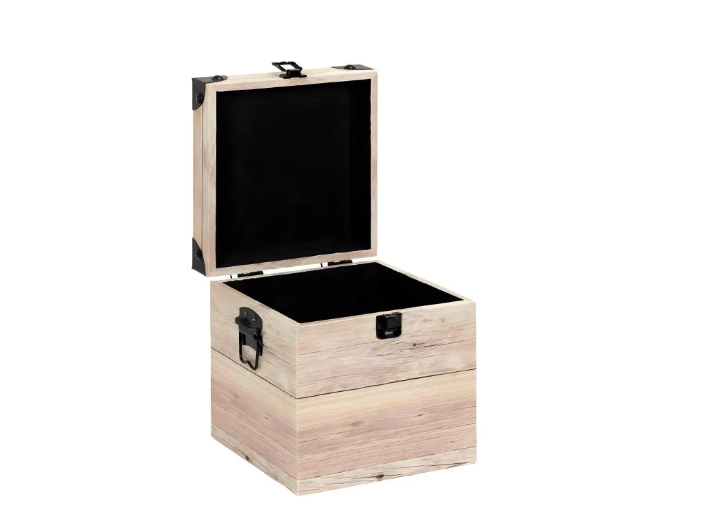 D’inspiration industrielle, l’aspect bois rosé et les détails métalliques noirs habilleront parfaitement vos espaces. Pratique, ces malles vous offrent une capacité de rangement supplémentaire, tout en donnant du cachet à votre déco.