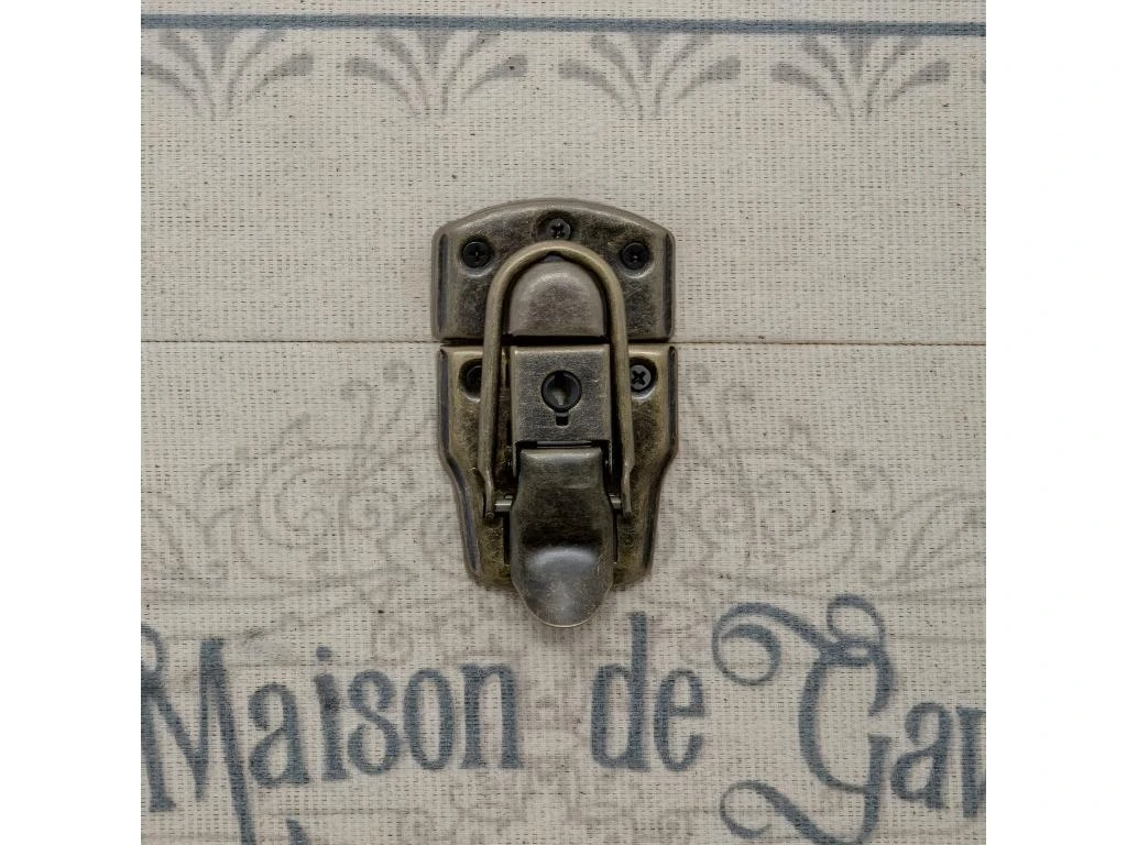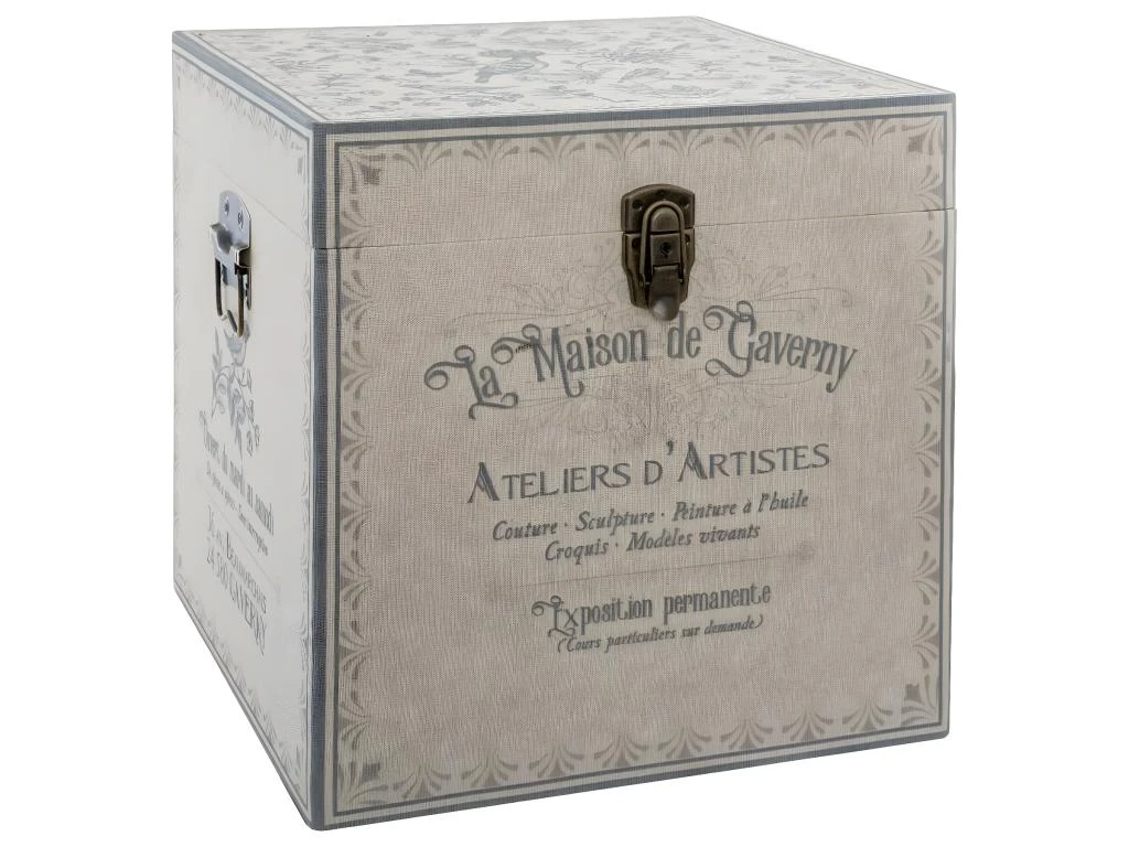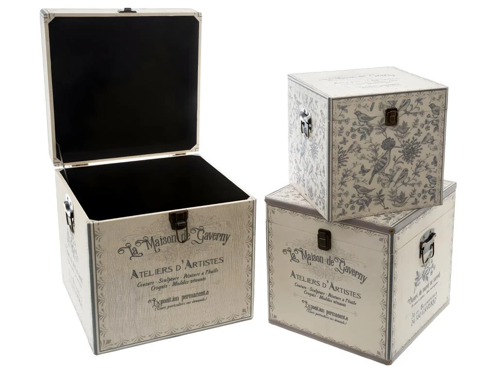 Set de 3 Malles de rangement en Bois déco Atelier rétro – Dimensions : S : L. 28 x l. 28 x H. 28 cm – Dimensions : M : L. 34 x l. 34 x H. 34 cm – Dimensions : L : L. 40 x l. 40 x H. 40 cm – Matière : Bois MDF et Zinc – Poids Produit : 14.5 kg .