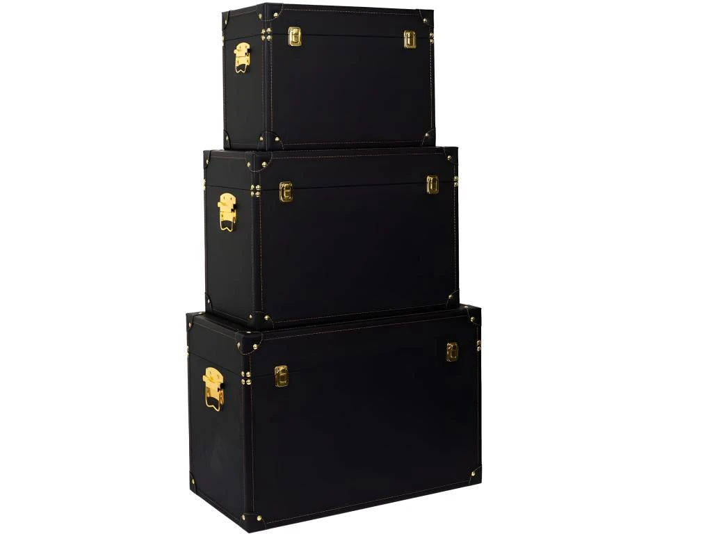 Set de 3 malles décoratives noires et dorées