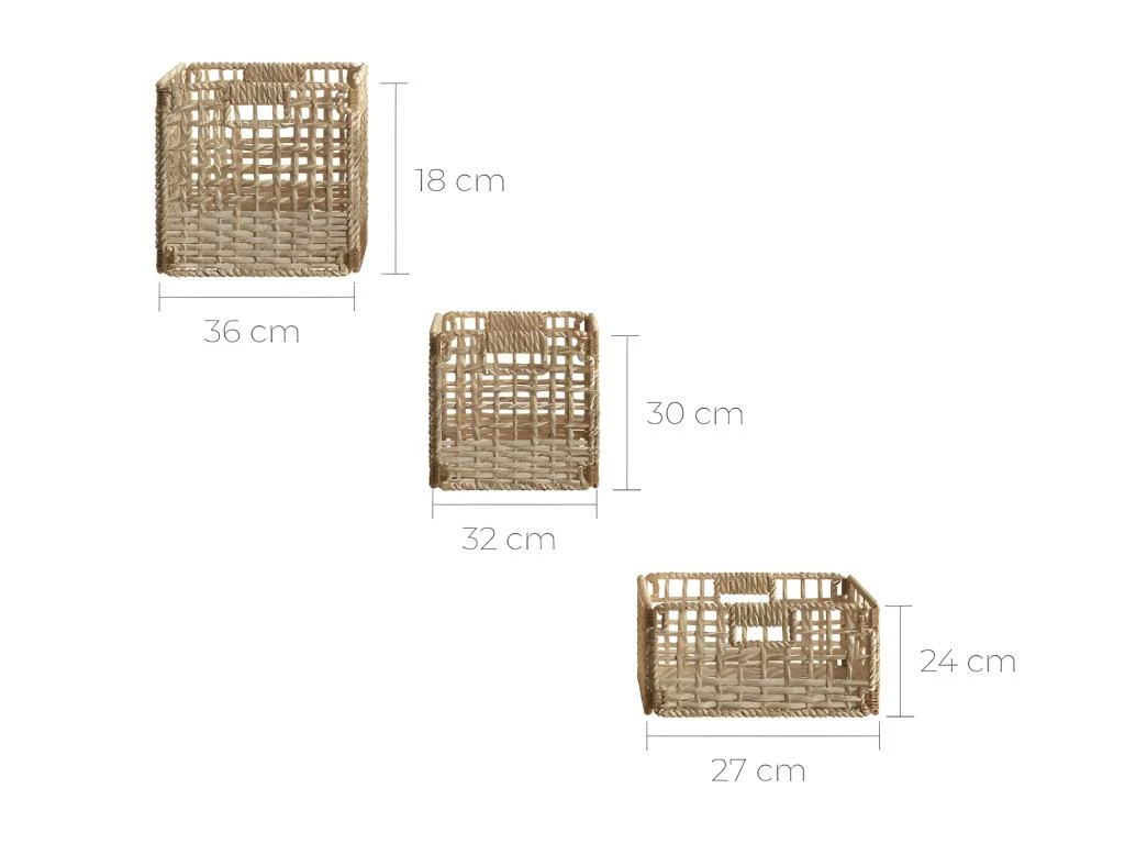 Conçu avec soin et dans les règles de l’artisanat vietnamien, ce set de 3 panières de différentes tailles se compose d’une solide structure en métal revêtue de jacinthe d’eau et feuilles de palmier apportant une note infiniment naturelle. En plus, ses deux matières sont à la fois robustes et douces au toucher, donc parfaites pour vous faire succomber au charme de ce produit.