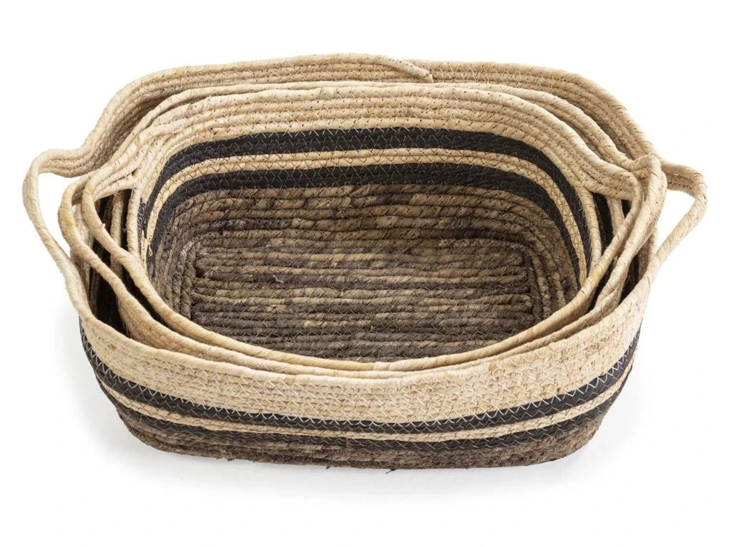 · Cet ensemble de paniers est fait à la main et ils sont faits de feuilles de maïs et de papier.Les feuilles de maïs sont un matériau de plus en plus apprécié par le secteur de la décoration d’intérieur pour la fabrication de paniers, layettes ou paniers à linge.