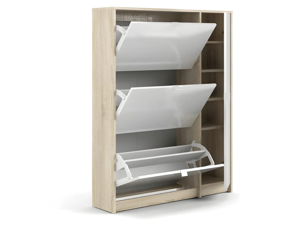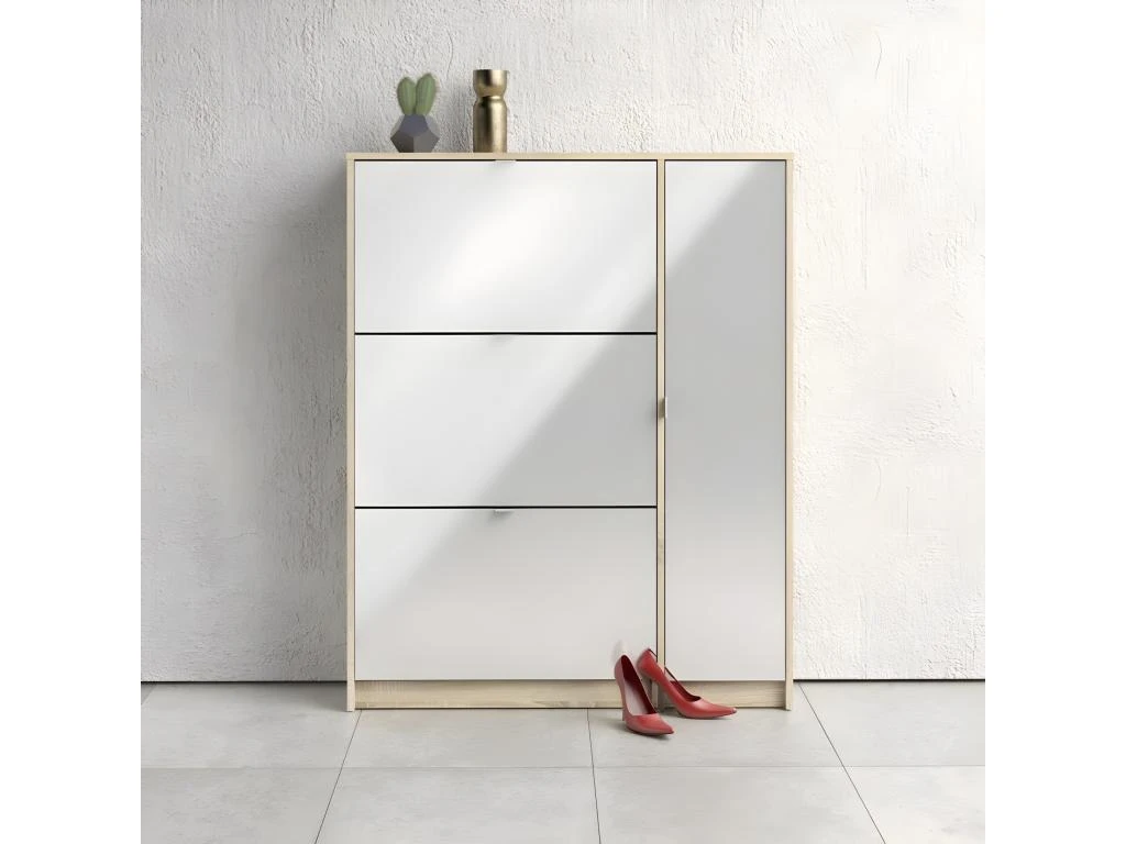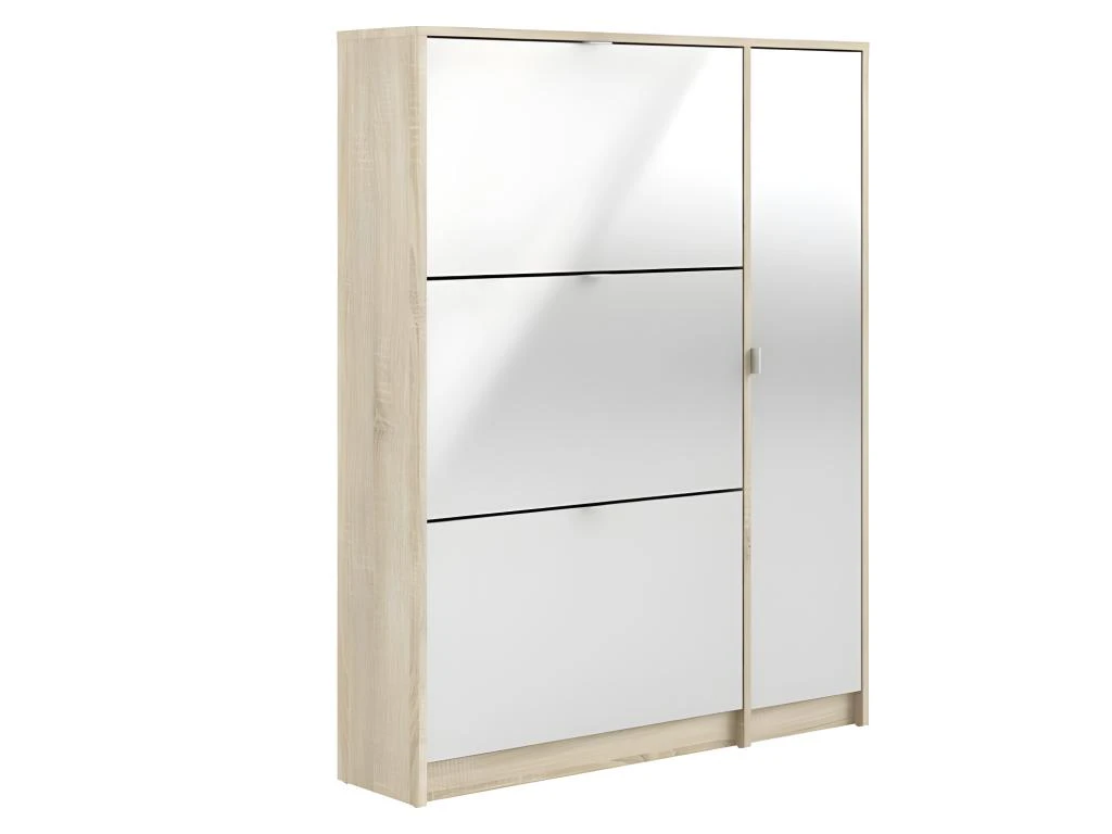 Shane Armoire à chaussures, 3 casiers, 2R, 1 porte, finition chêne structuré, blanc brillant.Obtenez des meubles de bonne qualité, confortables, conçus dans un design élégant et moderne. Nos meubles sont vendus à des prix vraiment très attractifs et compétitifs. Créez un intérieur qui vous ressemble, en créant un style qui vous est propre grâce à de nouveaux meubles. Combinez vos meubles avec d’autres éléments et accessoires pour créer une athmosphère chic et à la mode. Soyez toujours au goût du jour en matière d’habitat, et suivez les dernières tendances telles que présentées dans les revues et les magazines. Chez nous, vous trouverez des modèles de meubles et de décoration d’intérieur absolument uniques, chics et ultra confortables. Tous nos meubles offrent un design tendance.