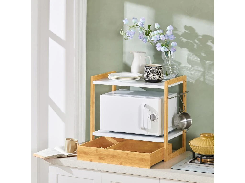 Ce support de stockage polyvalent peut être utilisé pour stocker de la vaisselle, diverses bouteilles d’assaisonnement, des appareils électriques de cuisine, etc. et même pour stocker des articles de toilette ou des livres.