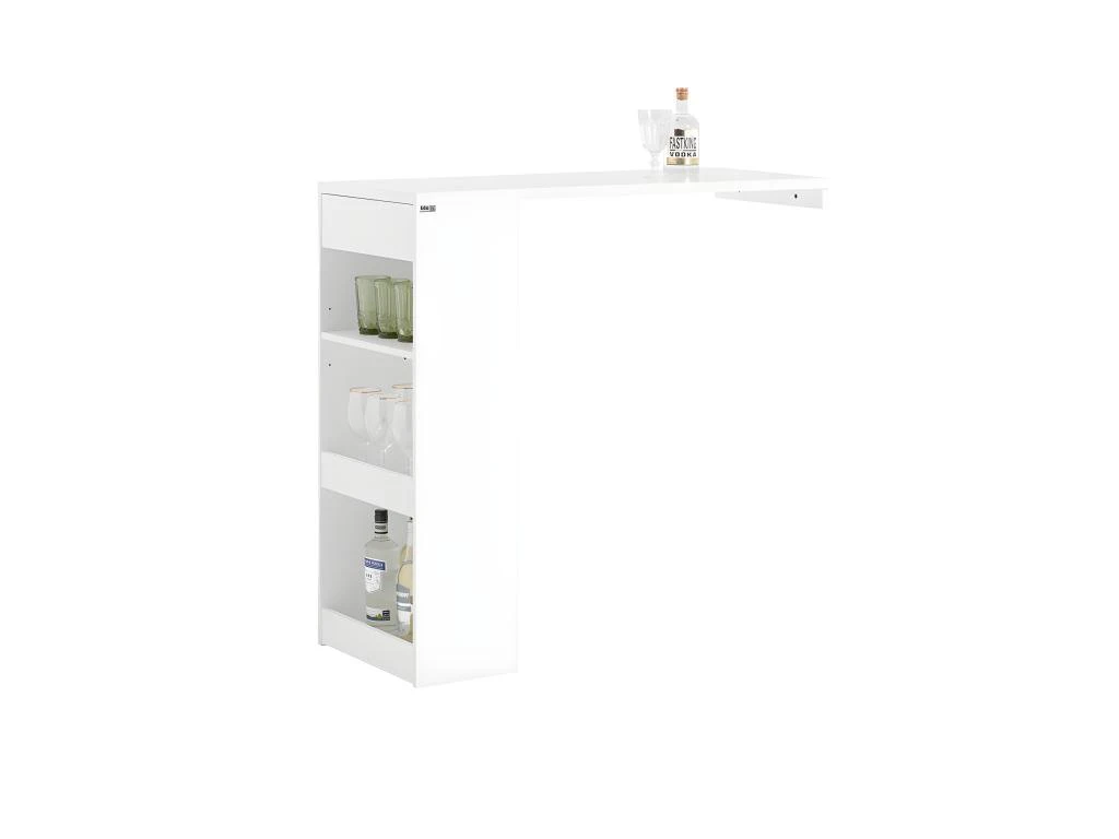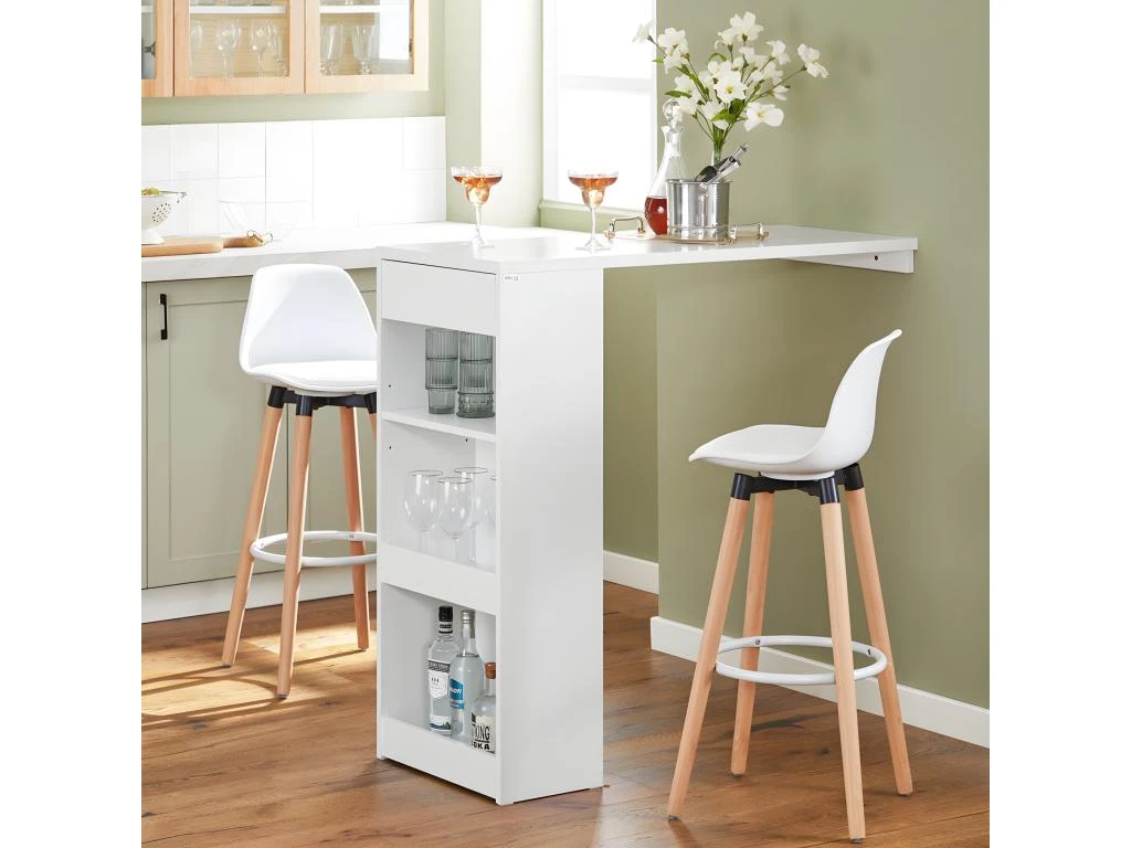Cette table de bar avec rangement vous permet de profiter pleinement de vos moments de détente : buvez votre café du matin ou un verre de bon vin le soir en toute convivialité avec la famille ou entre amis.
