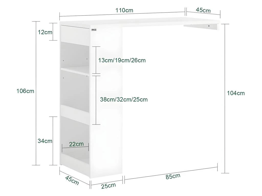 – Dimensions (L x P x H) : 110 x 45 x 106 cm.