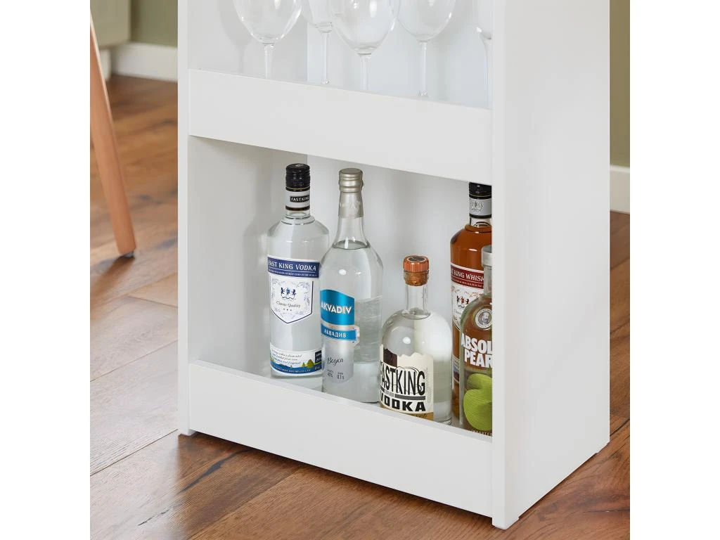 La table dispose un tiroir et trois étagères offrant suffisamment d’espace pour ranger des jus de fruits, des sodas, des cocktails, des verres à vin, des bouteilles, des champagnes et bien plus encore.