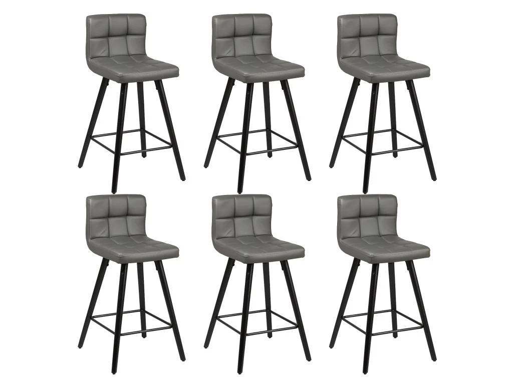 Piètement en frêne, finition laqué anthracite. Support et repose-pieds en métal laqué noir. Embouts de pieds réglables. Assise garnie de mousse polypropylène de densité 30kg/m3. Revêtement assise et dossier en simili gris.