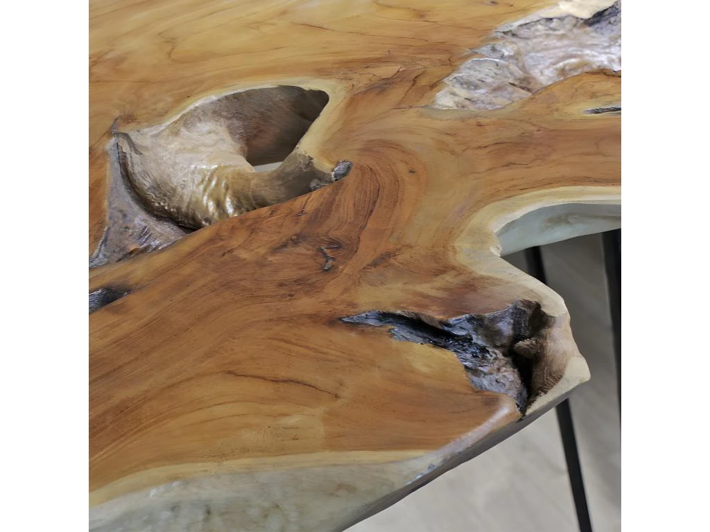 - COMPOSITION : Plateau en bois de teck. Pieds en métal noir.