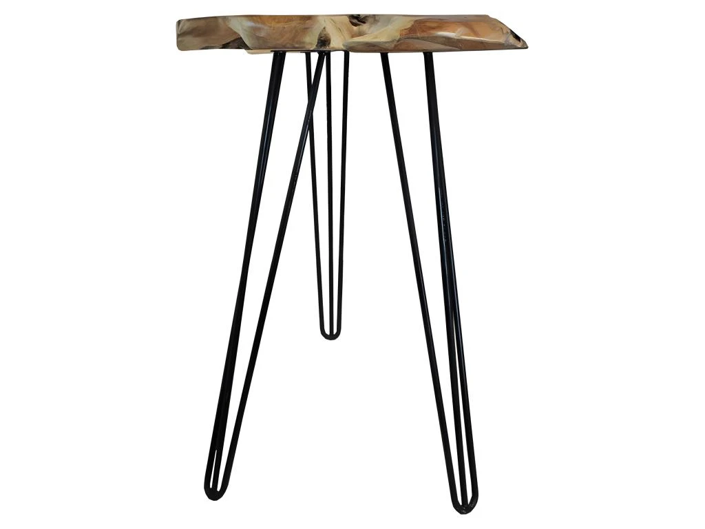 - PRODUIT : Table de bar en bois de teck avec pieds filaire en métal noir GEPETTO.
