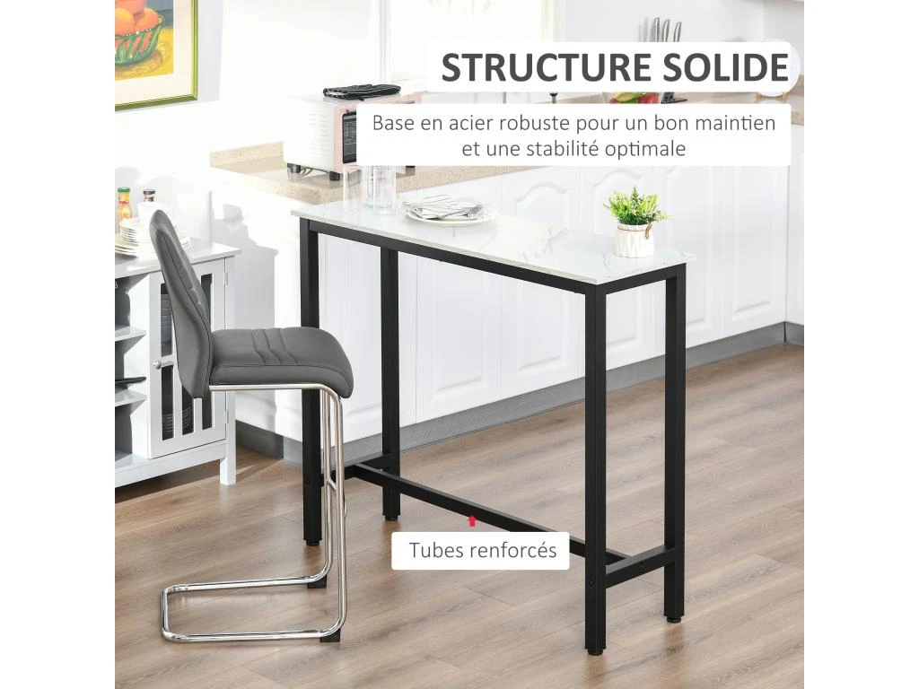 – Table de bar, table haute polyvalente : peut servir à la fois de table de cuisine, de table de travail et de table de bureau