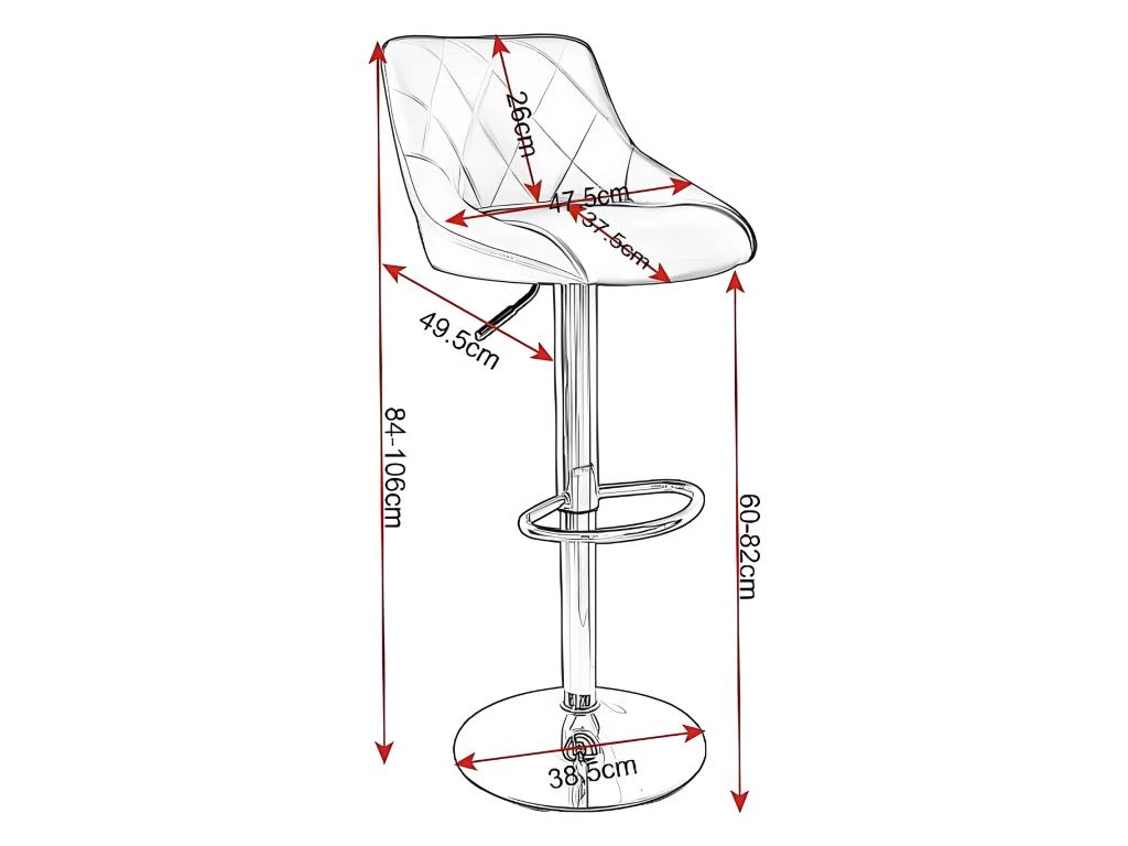 Réglage de la hauteur d’assise : environ 60 cm – 82 cm