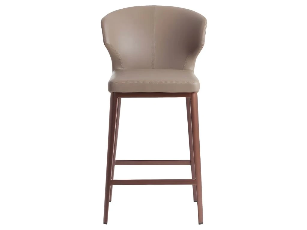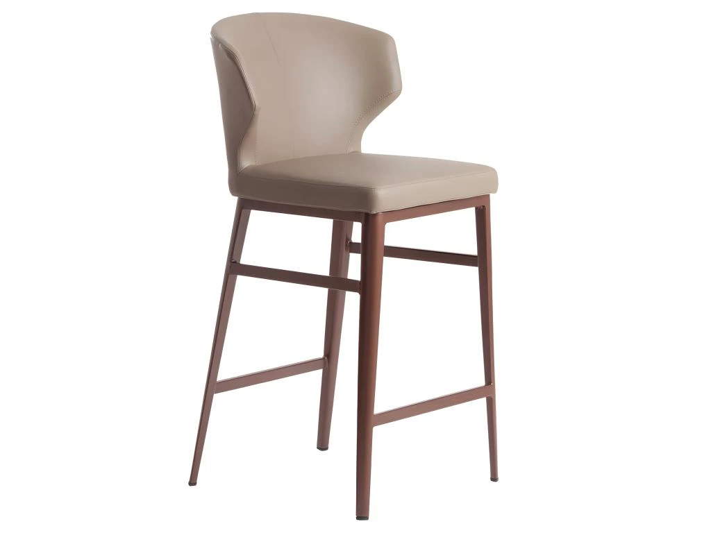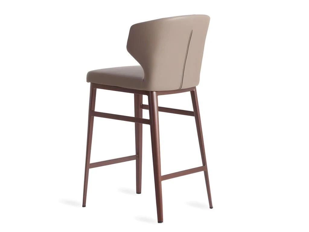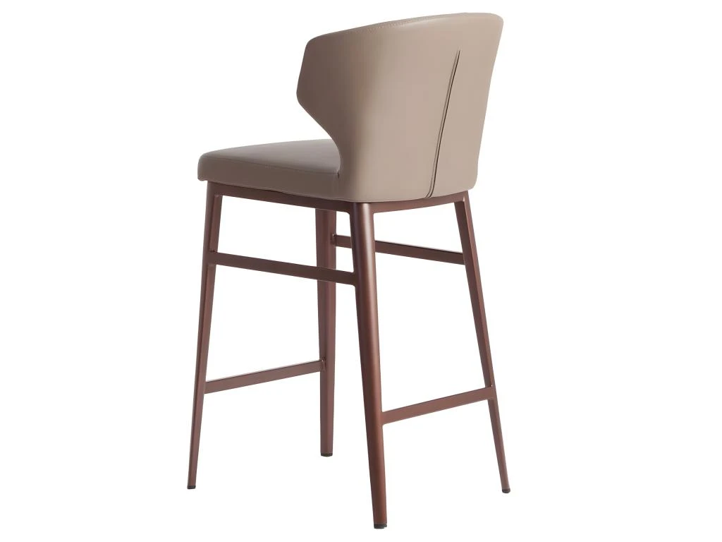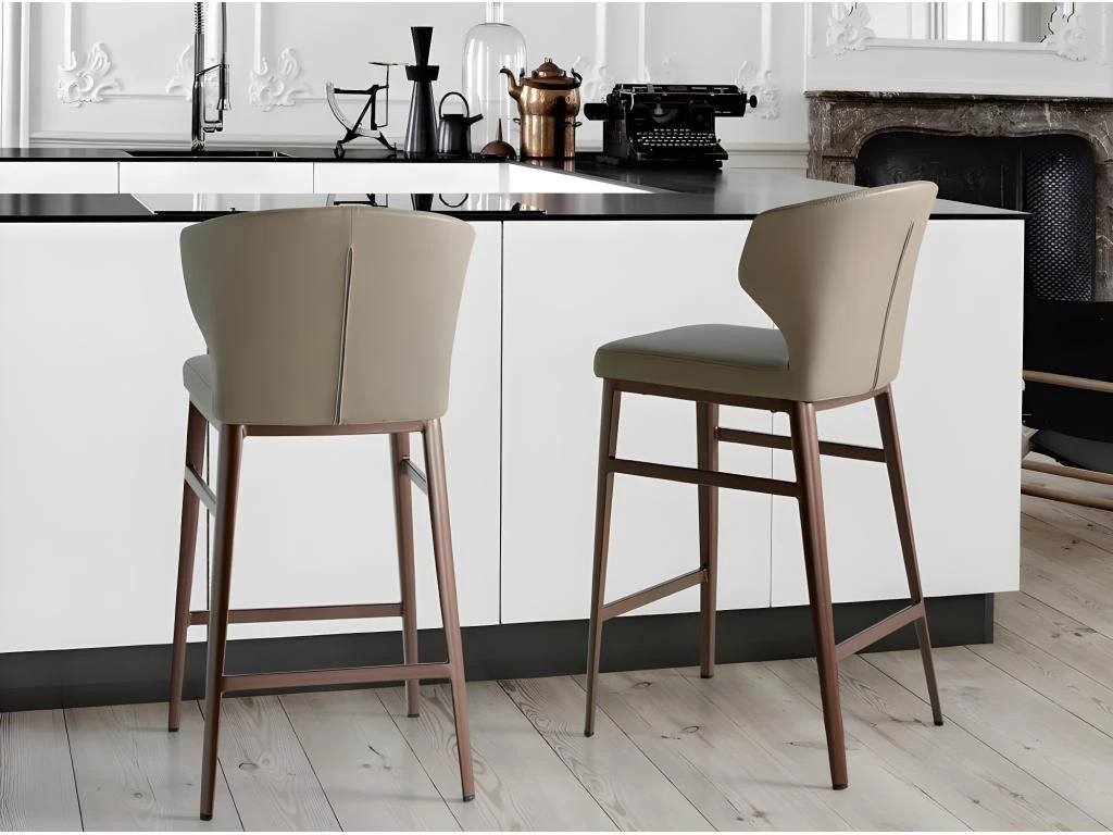 Tabouret de design moderne recouvert de simili cuir de vison. Un tabouret avant-gardiste et actuel aux pieds en acier bronze mat qui deviendra un incontournable de votre cuisine. Son assise en mousse polyuréthane de 25 kg / m3 et son design enveloppant lui confèrent ce style unique et un plus grand confort