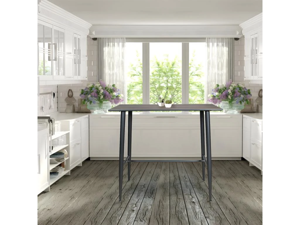 Parfaite pour organiser un espace déjeuner design dans votre intérieur, cette table haute a de quoi charmer grâce à son piètement métallique et son plateau aspect bois du plus bel effet. Hauteur du plateau : 102cm.