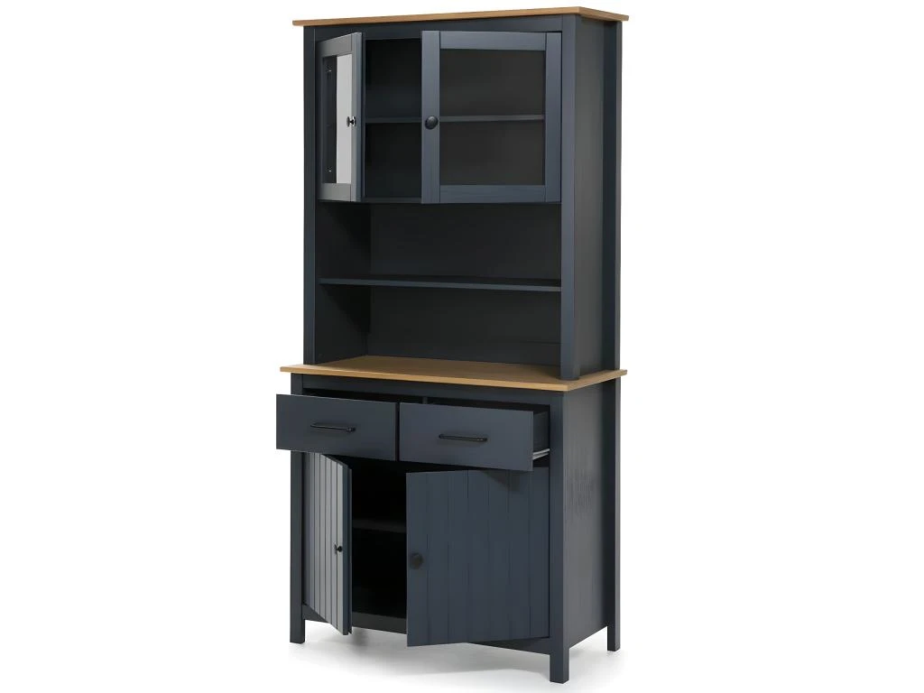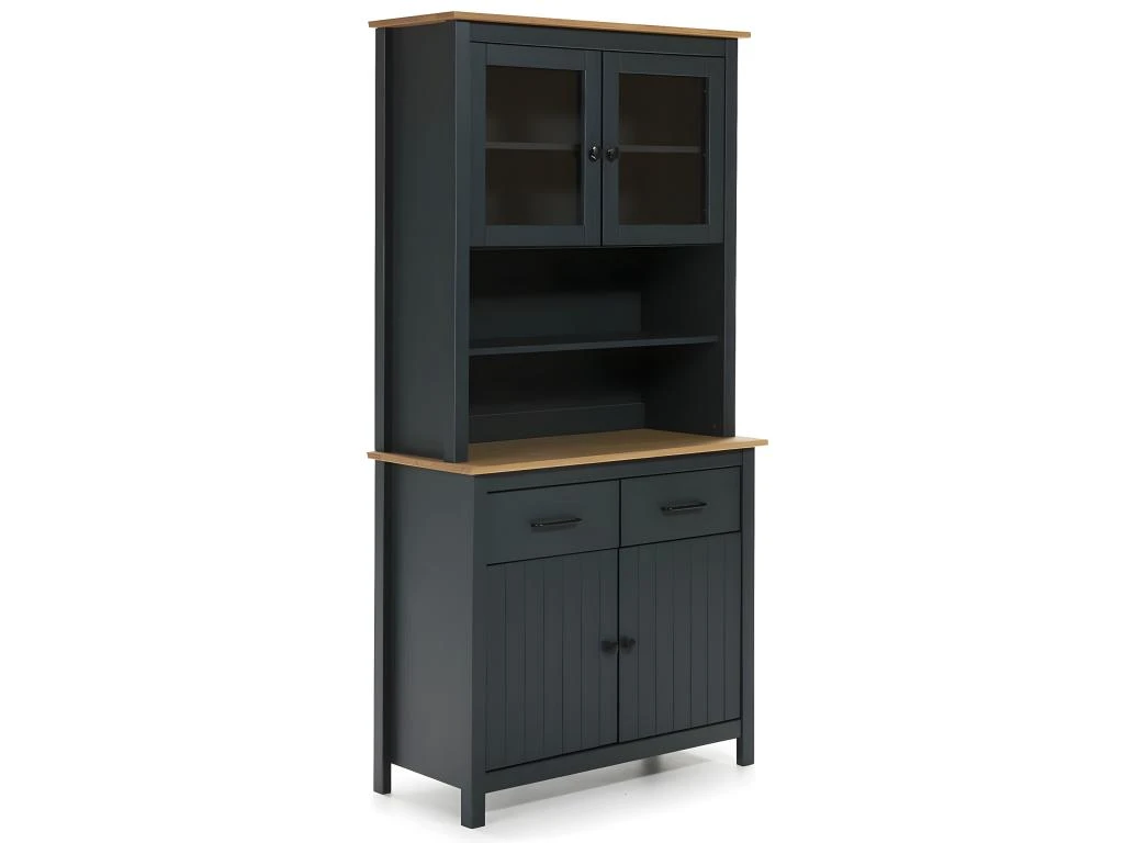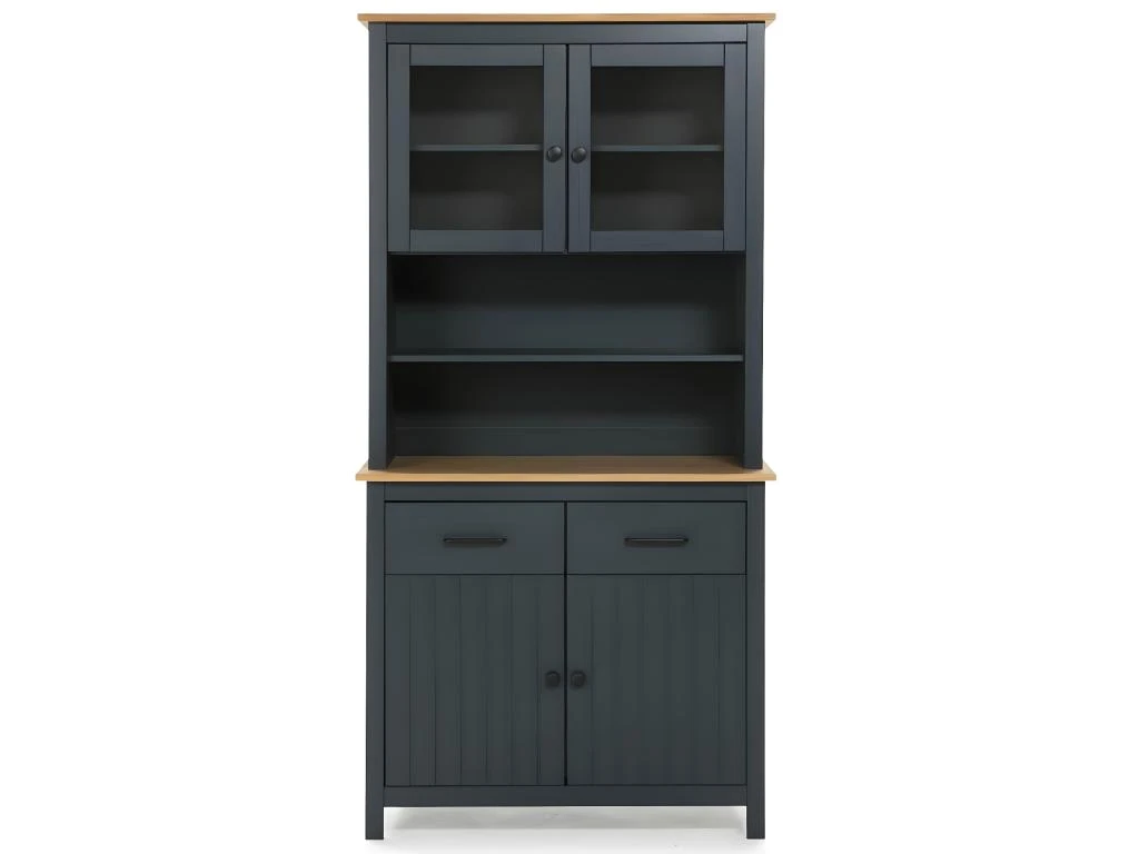 Buffet Haut 4 Portes 2 Tiroirs Bois Ciré et Bleu Pétrole de la gamme Tina.