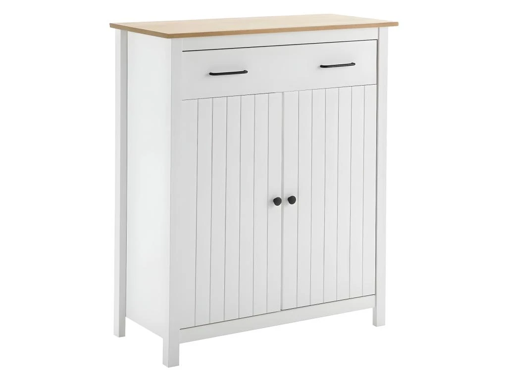 Meuble Haut 2 Portes 1 Tiroir Bois Ciré et Blanc de la gamme Tina.